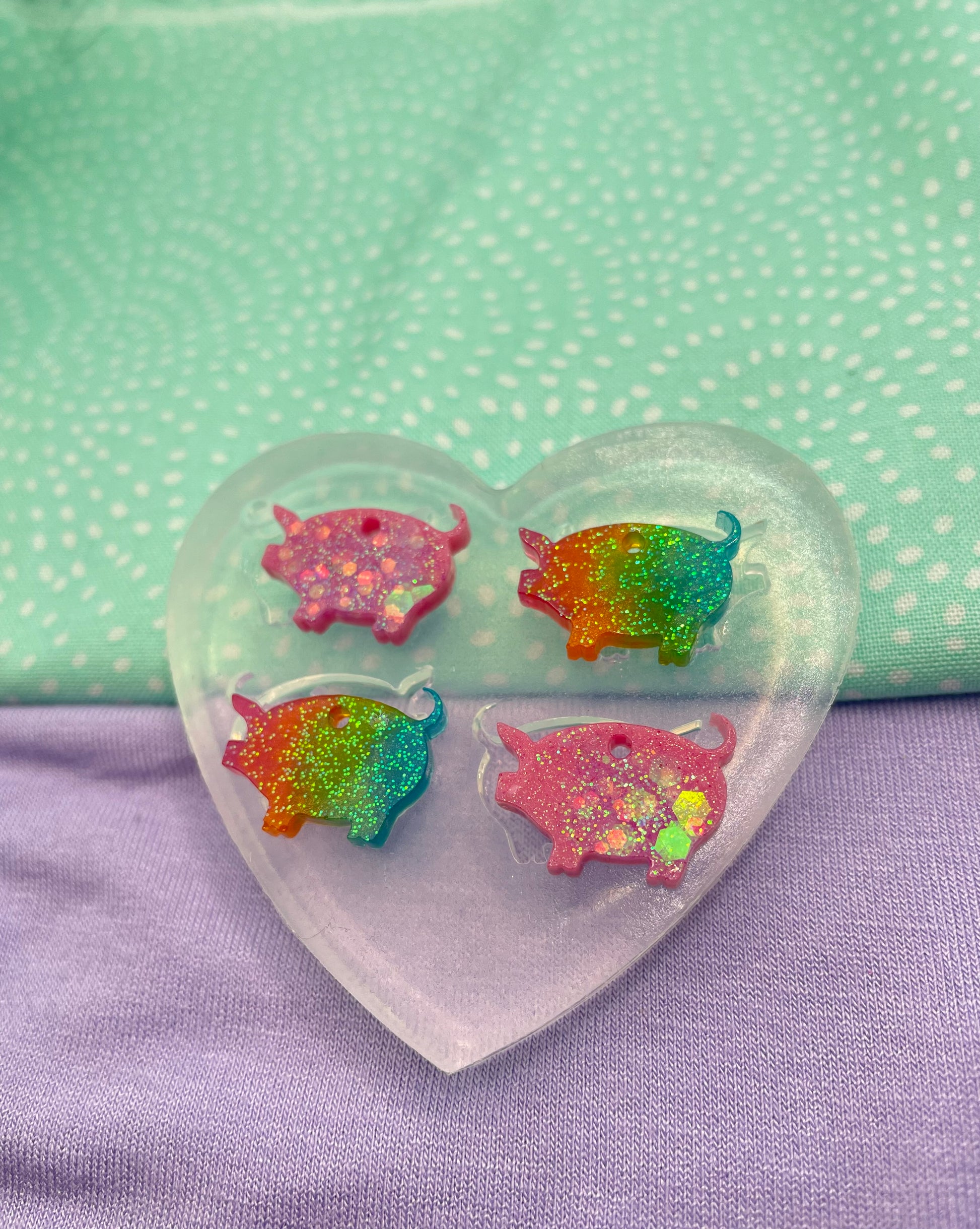 Although colored silicone molds with mica or glitter are very attractive, we usually don't recommend them because clear silicone molds give you a better vision as to what's going on inside e.g. trapped bubbles and so are more practical for resin artists. However, if you would like to get a colored mold, we have the pigment needed. Please contact us for more details.