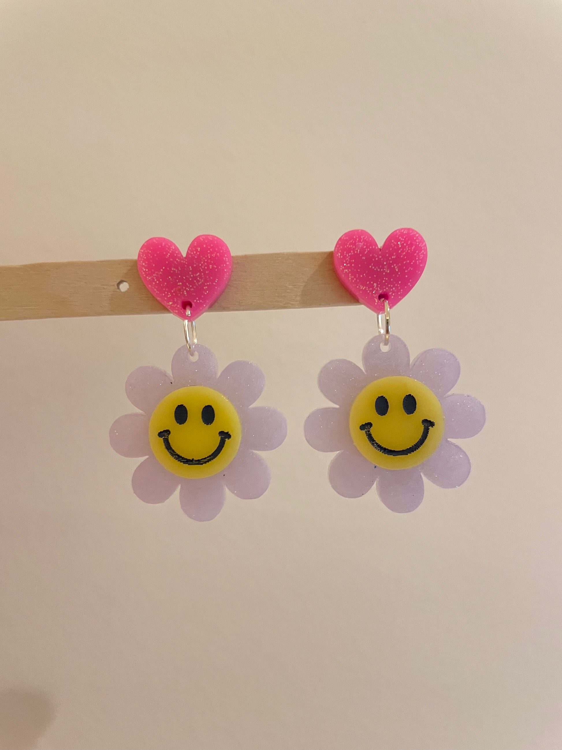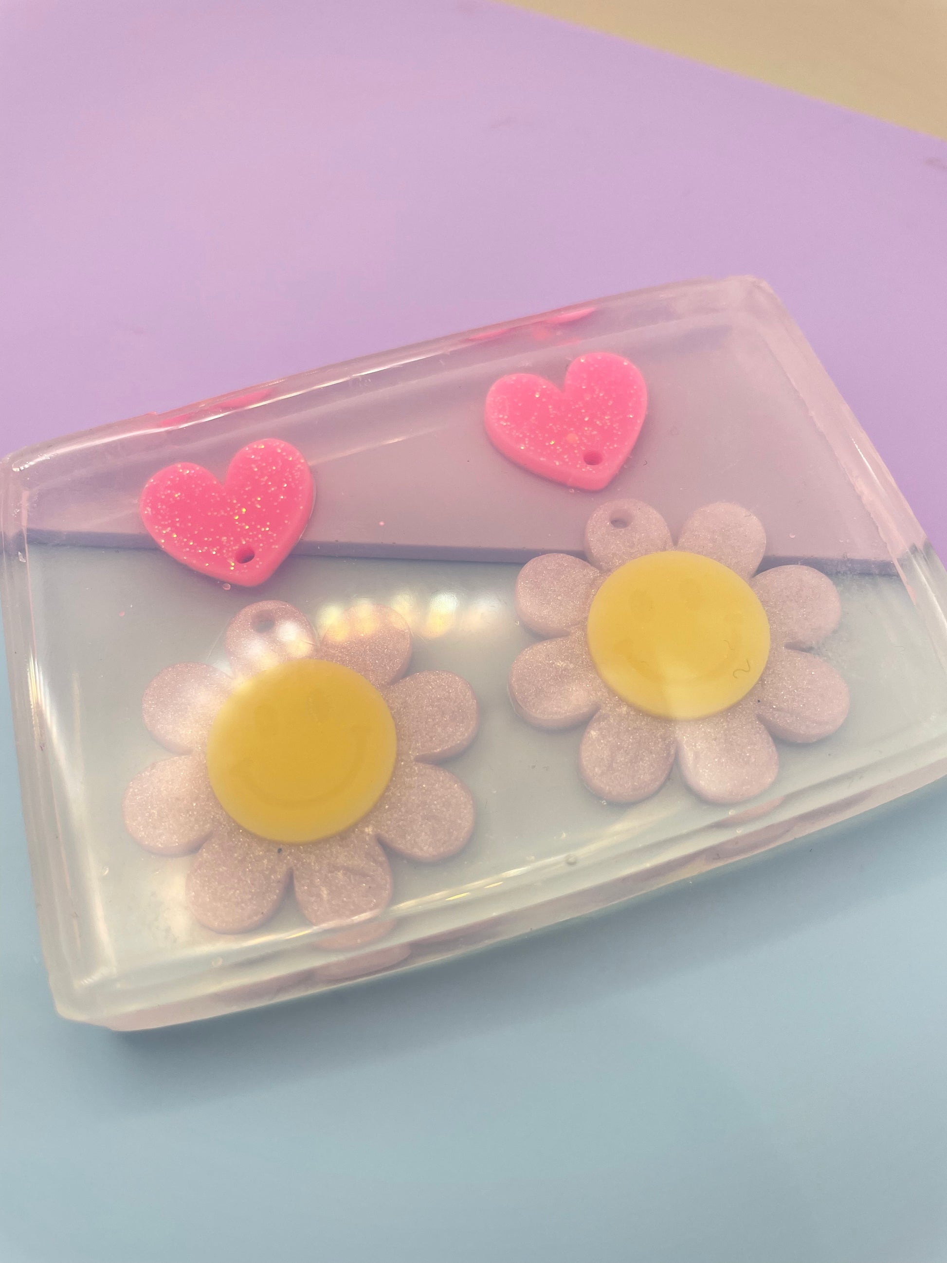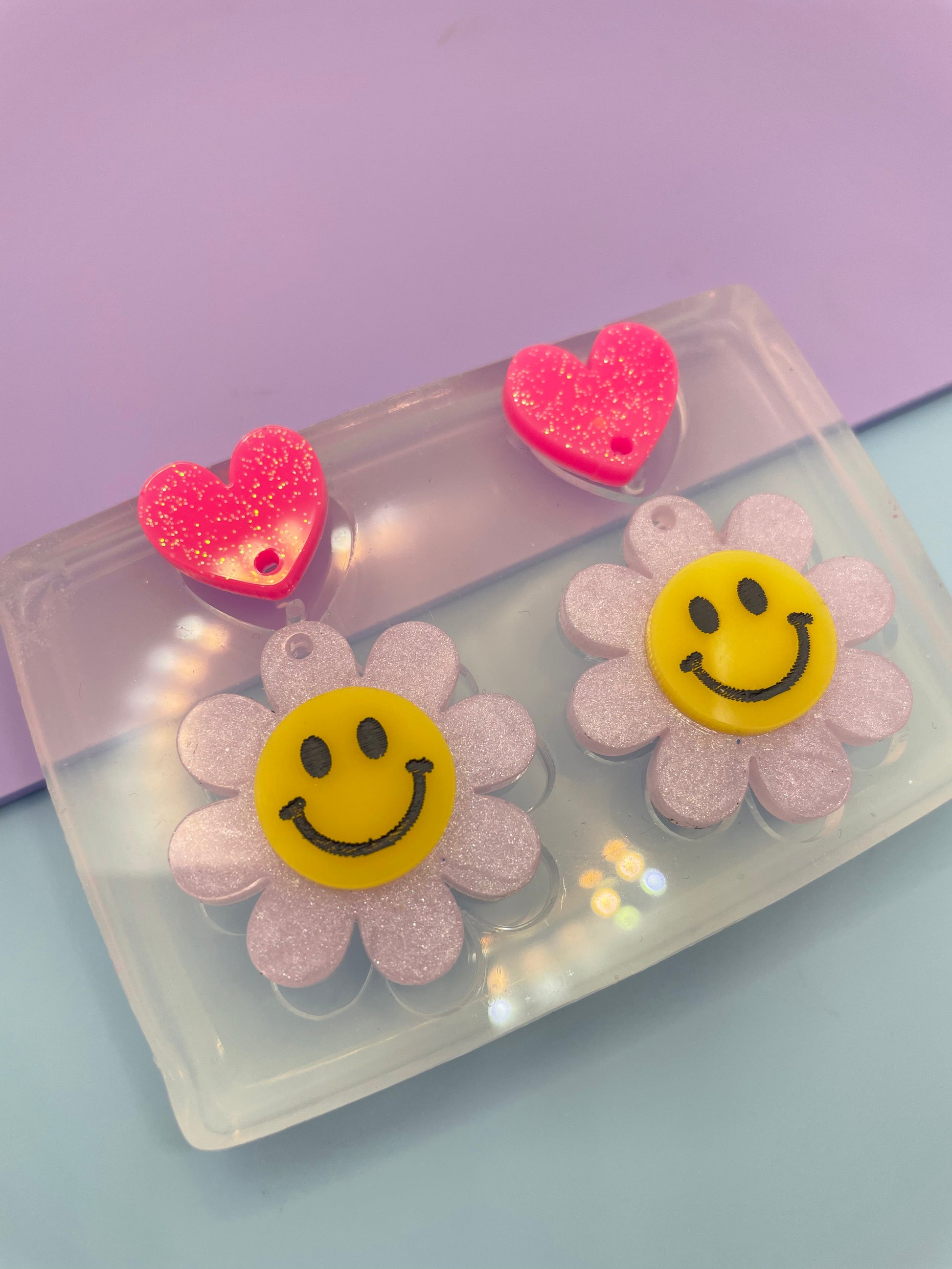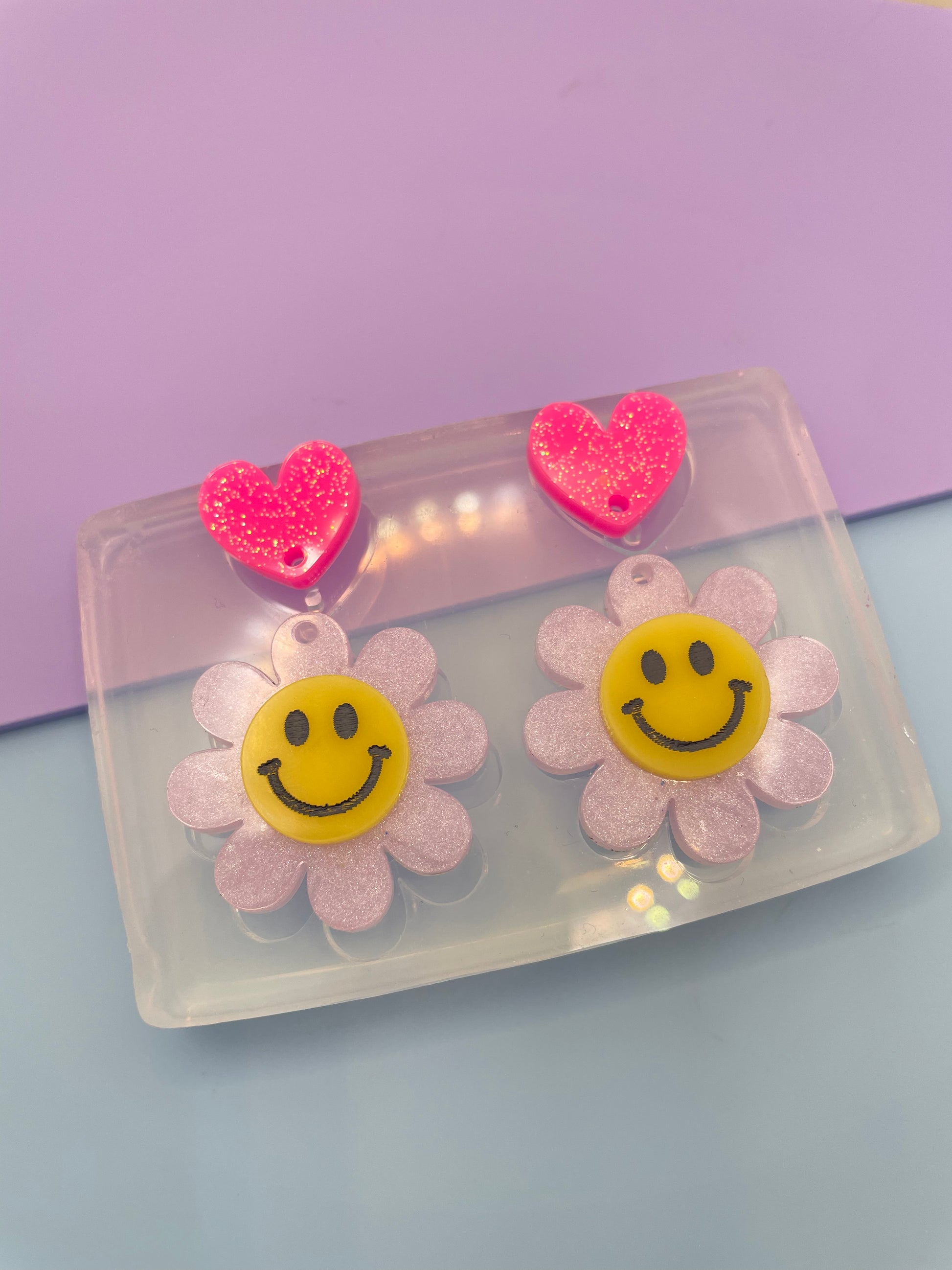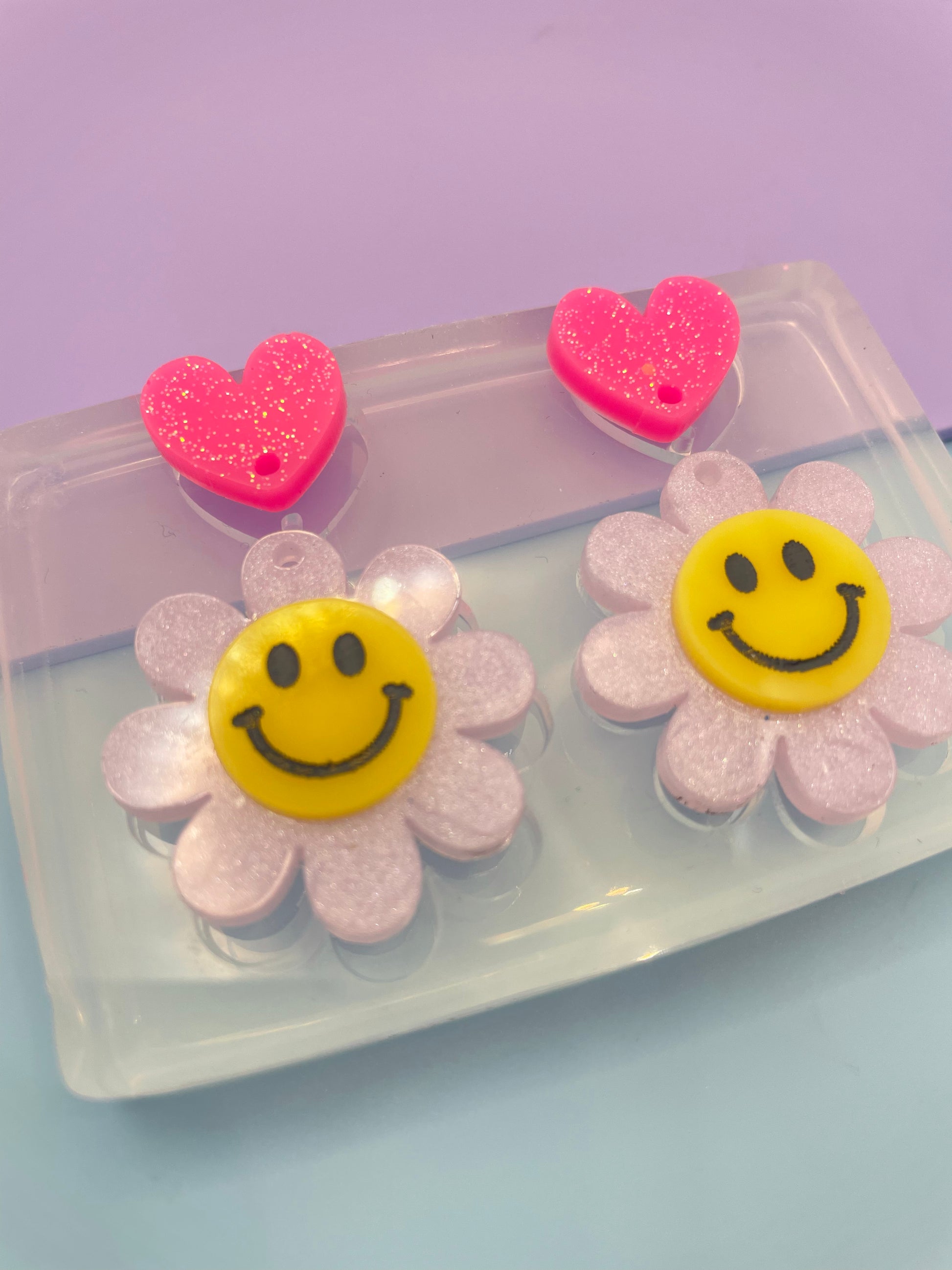 Small Happy Face Daisy Flower Heart Stud Topper Dangle Earring Mold