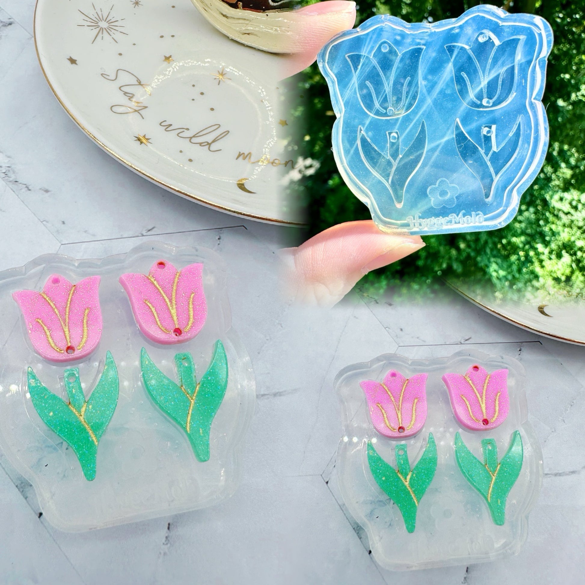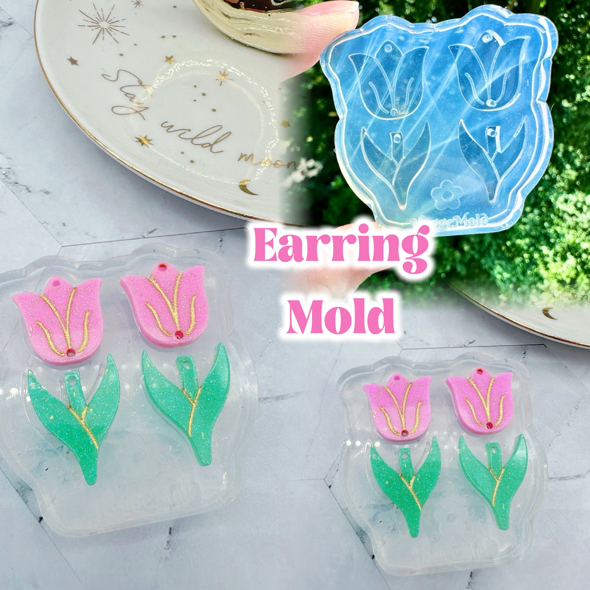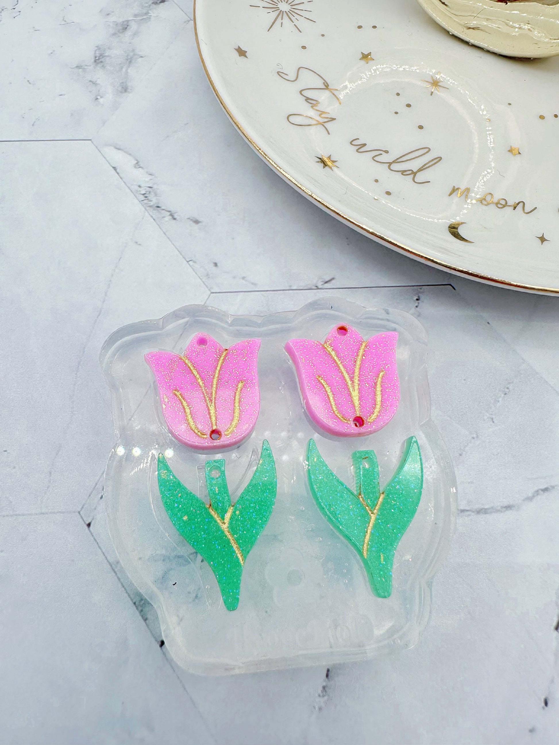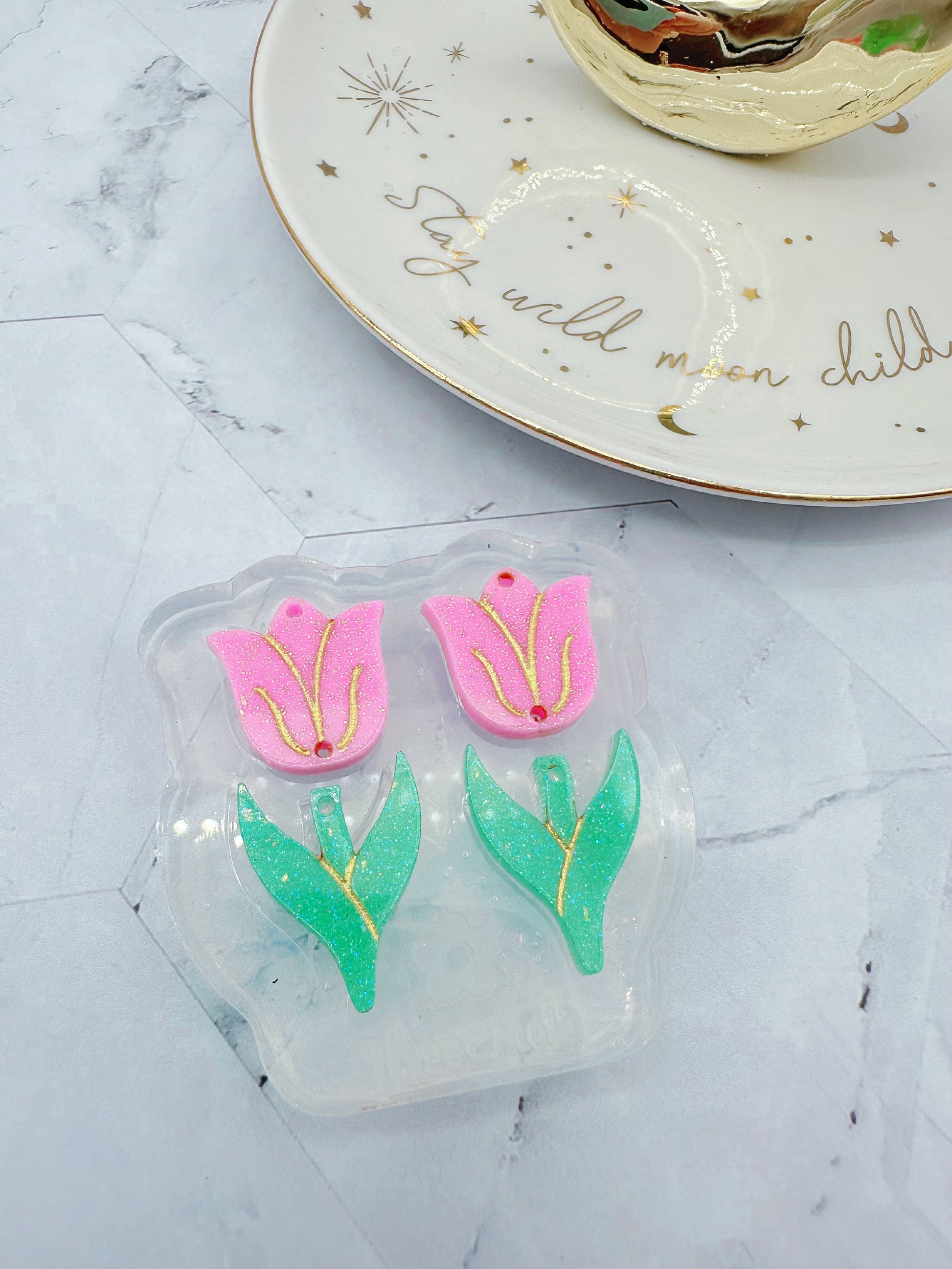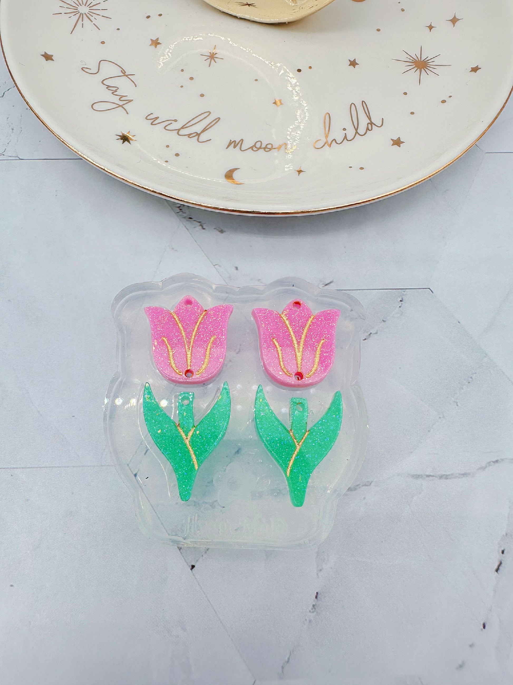 Small Two-part Engraved Tulip Dangle Earring Mold