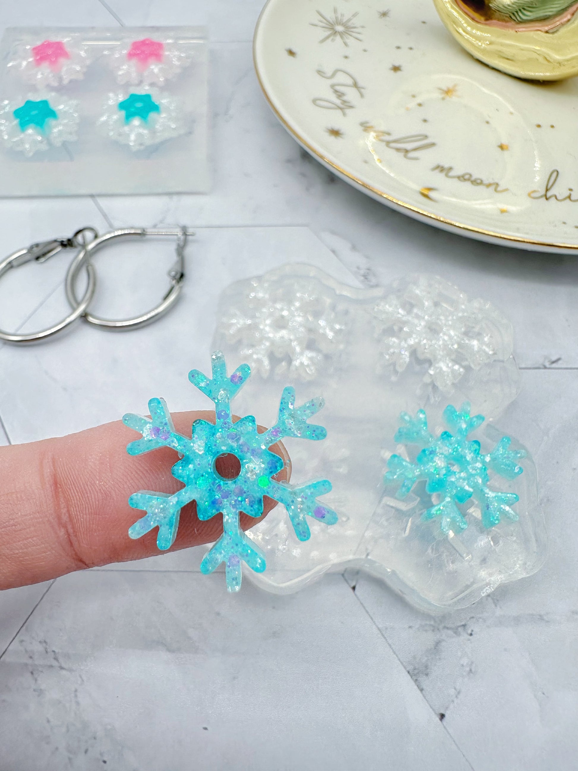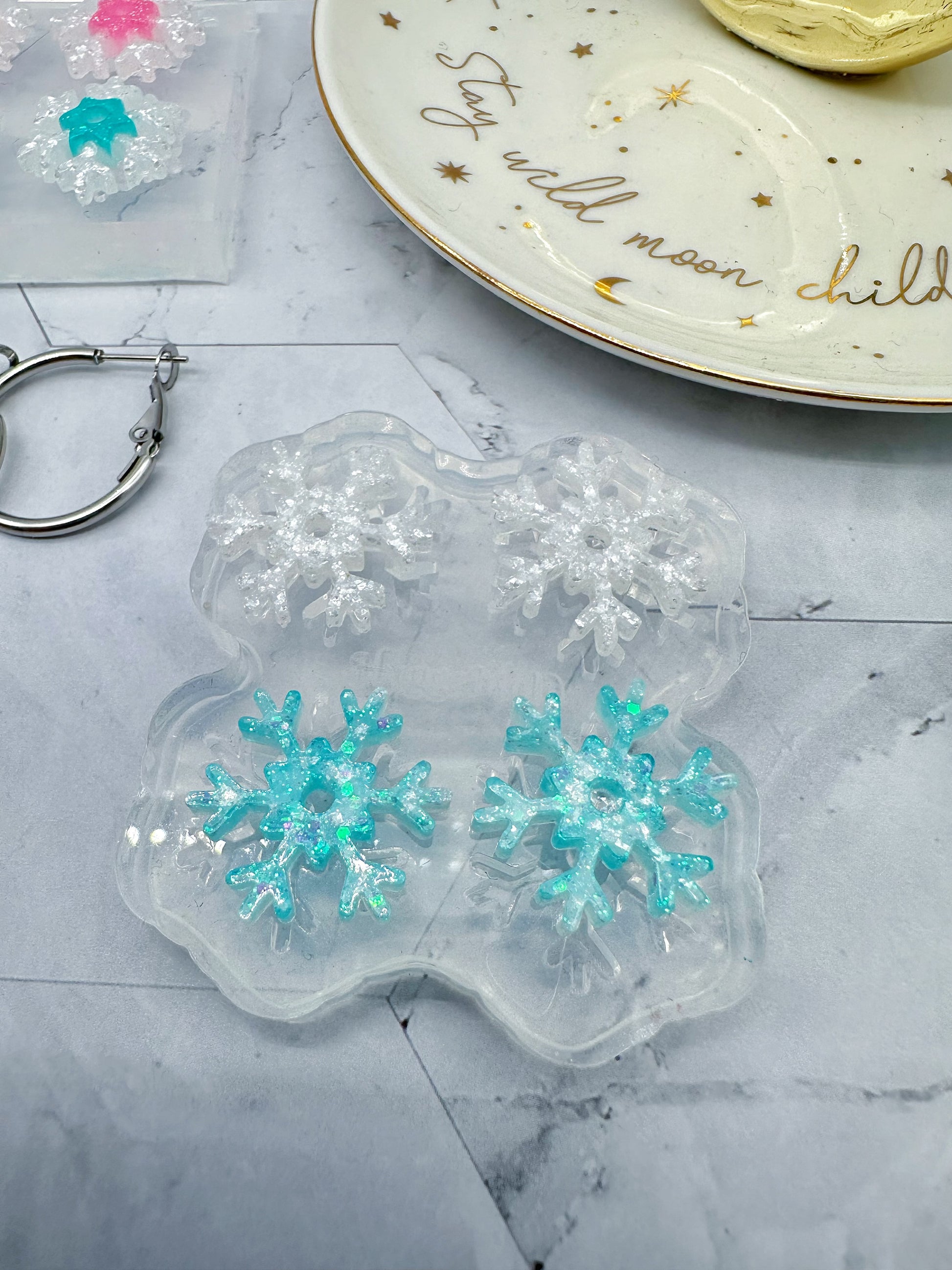 Snowflake Spinner Hoop Earring Mold Winter Christmas