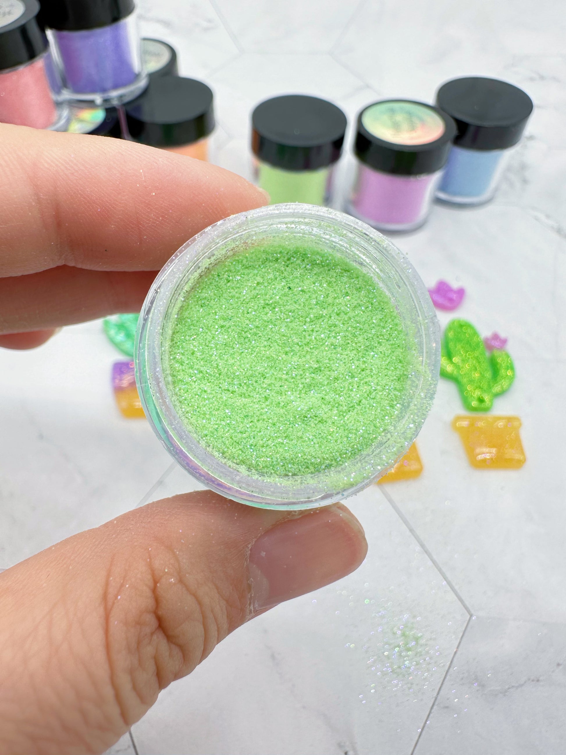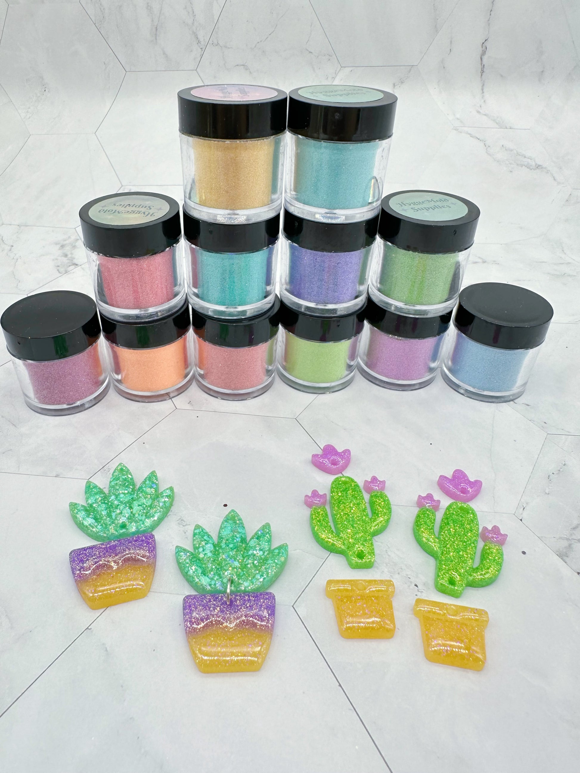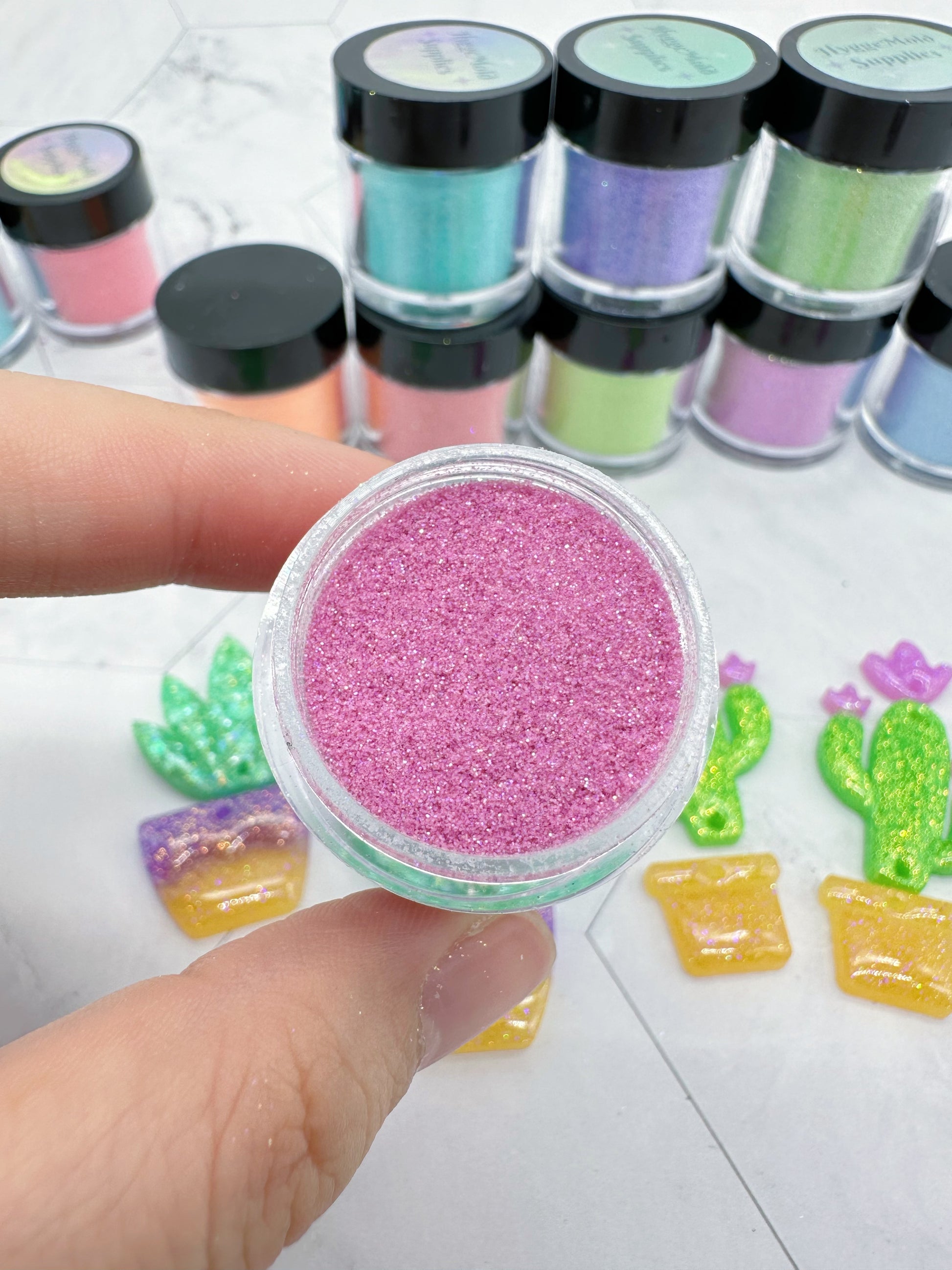 Although colored silicone molds with mica or glitter are very attractive, we usually don't recommend them because clear silicone molds give you a better vision as to what's going on inside e.g. trapped bubbles and so are more practical for resin artists. However, if you would like to get a colored mold, we have the pigment needed. Please contact us for more details.