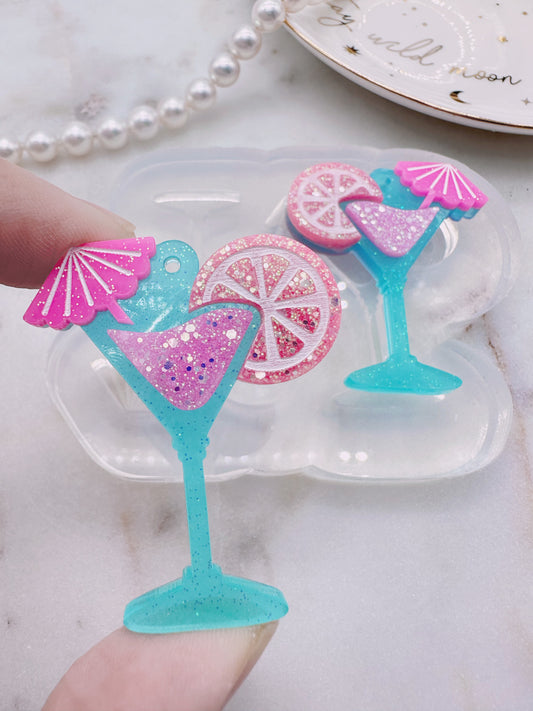 Hawaiian Flower Cocktail Glass Dangle Earring Mold