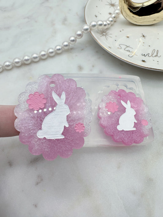 4 cm Bunny and Flowers Scalloped Oval Dangle Earring Mold