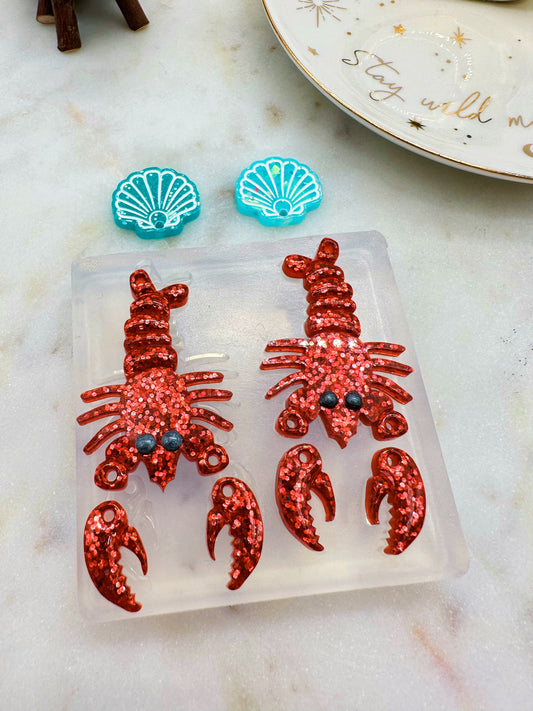 5.5 cm 3D Lobster and Shell Dangle Earring Mold
