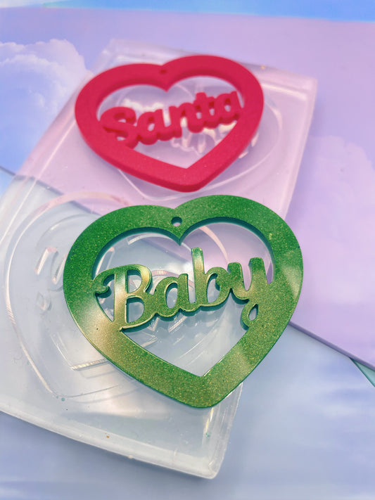 5 cm Goth Slogan Heart Word Dangle Earring Mold Clear Silicone Mould