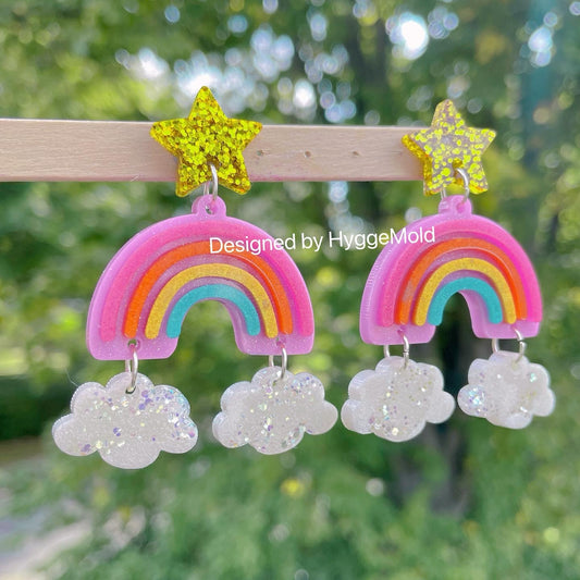 Layered Rainbow Cloud Star Dangle Earring Mold