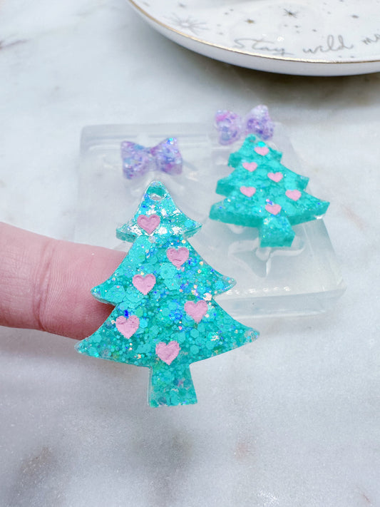 3cm Small Christmas Tree with Bow Dangle Earring Mold