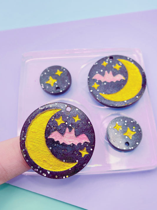4.2 cm Sitting Cat On Crescent Moon Stars Night Sky Multi-use Brooch Dangle Earring Mold