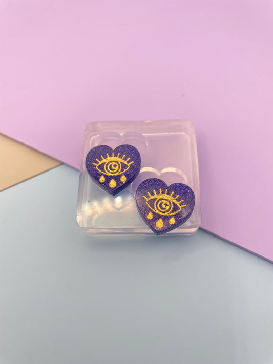 1.7 cm All-seeing Eye with Tears Celestial Heart Stud Earring Mold