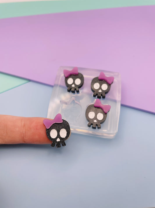 1.7 cm Mini Ribbon Skull Stud Earring Mold Halloween