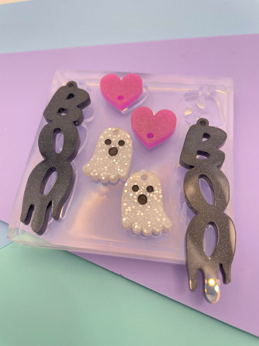 5cm Boo Word Heart Slogan Dangle Earring Mold Halloween