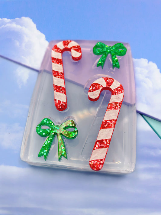 4.6 cm Candy Cane Christmas Multi-use Brooch Dangle Earring Keychain Hairclip mold