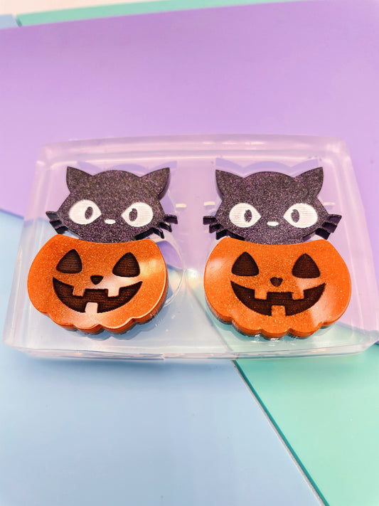 3.5cm Cat in Pumpkin Dangle Earring Mold Halloween