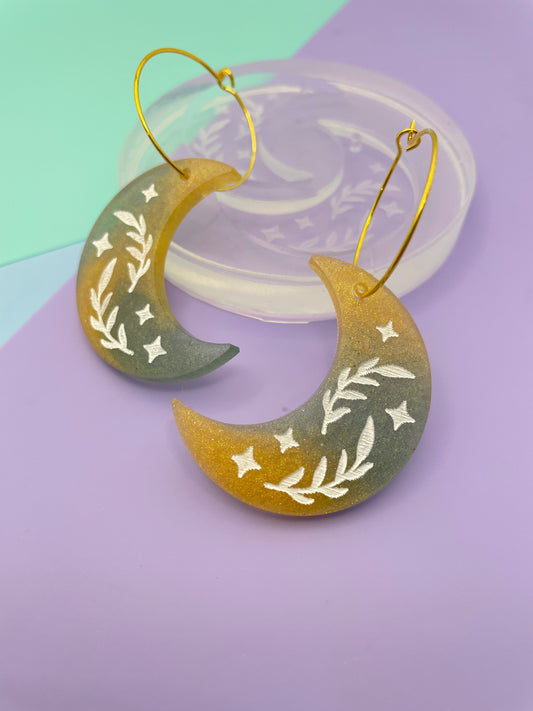 3.7 cm Sage Botanical Moon Dangle Earring Mold
