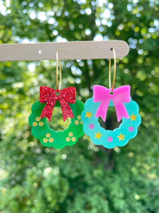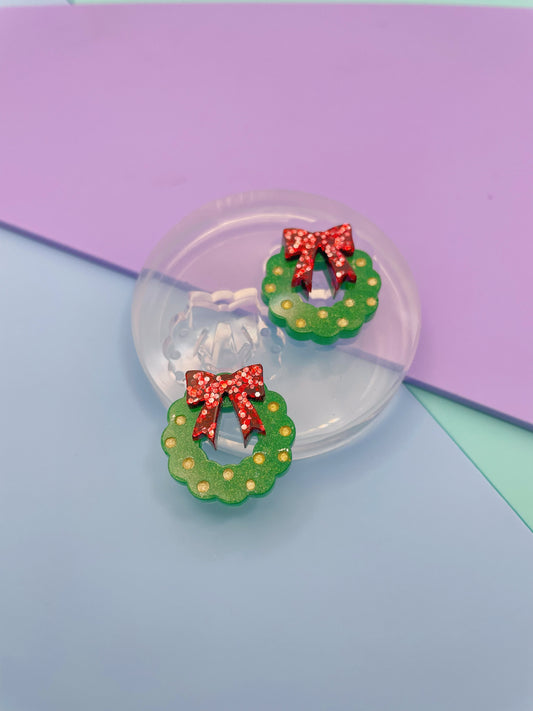 Small Christmas Wreath with Ribbon Bow Stud Earring Mold