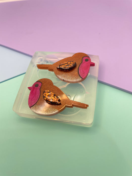 2022 Small 4 cm Layered Robin Brooch Dangle Earring Mold with Predomed wing