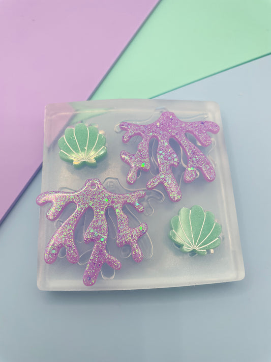 4.5 cm predrilled Mermaid Pearl on Scallop Shell Dangle Earring Keychain Mold