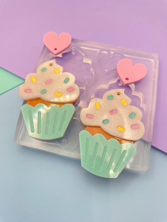 4.5 cm Cupcake with Whipped Cream and Sprinkles Heart stud topper dangle earring mold