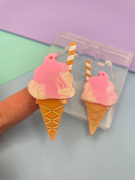 5 cm Sundae Ice Cream Waffle Cone Dessert Dangle Earring Mold