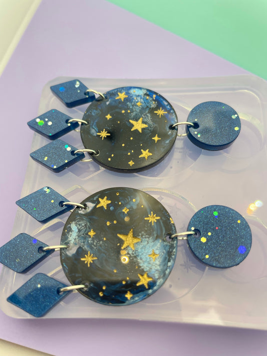 Starry Sky Round Disc with Rhombus tassel Dangle Drop Earring Mold