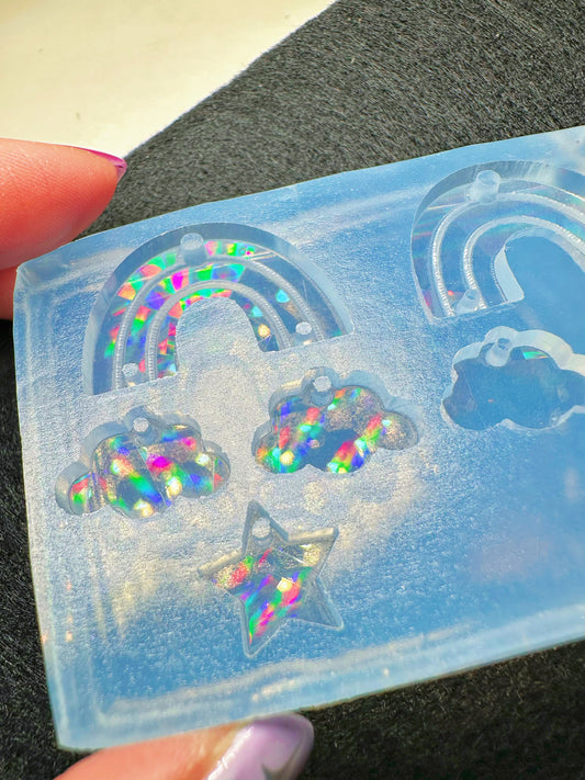 Holographic Rainbow Cloud Star Dangle Earring Mold for Hoop Charms