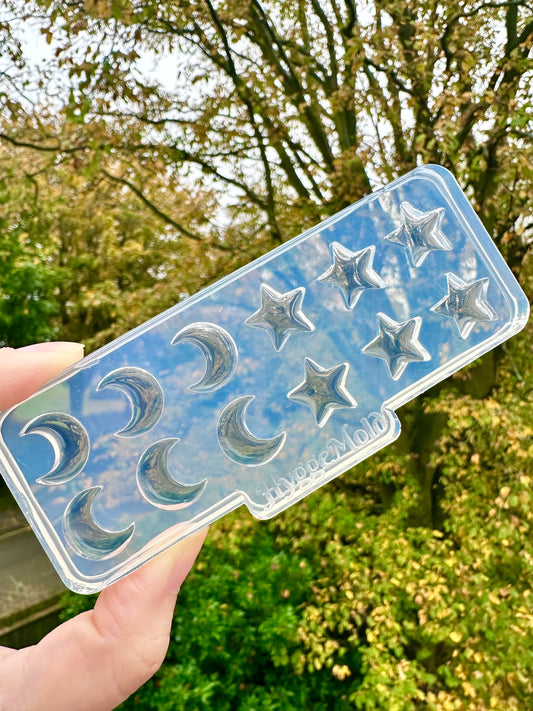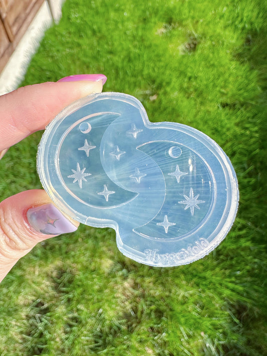 Holographic Engraved Celestial Moon Dangle Earring Mold for Hoop Charms