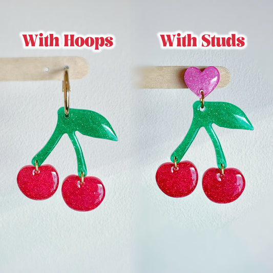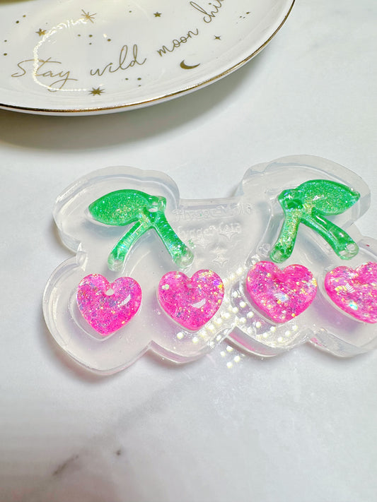 Small Predomed Heart Cherries Dangly Charm Hoop Earring Mold