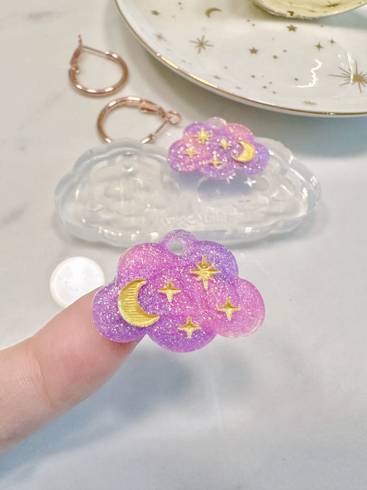 Dreamy Engraved Celestial Cloud Dangly Charm Hoop Earring Mold