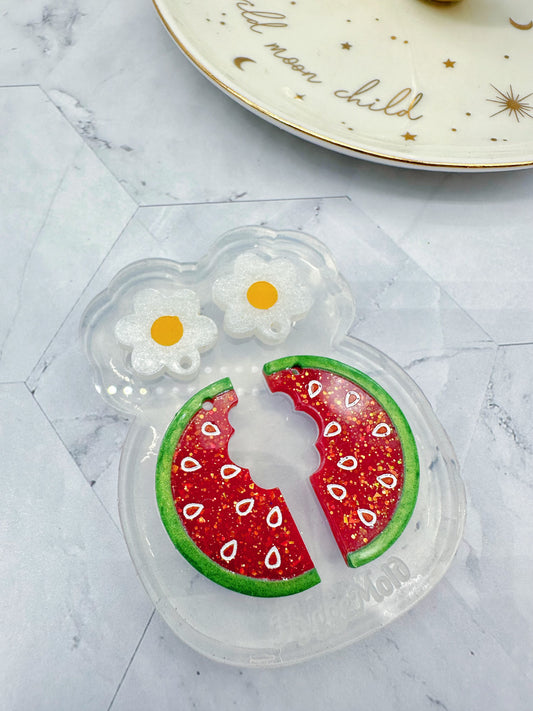 Engraved Bitten Watermelon Slice Flower Dangle Earring Mold