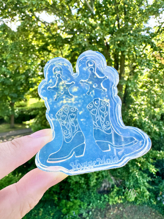 Beautiful Engraved Cowgirl Boots with flowers Dangle Earring Mold