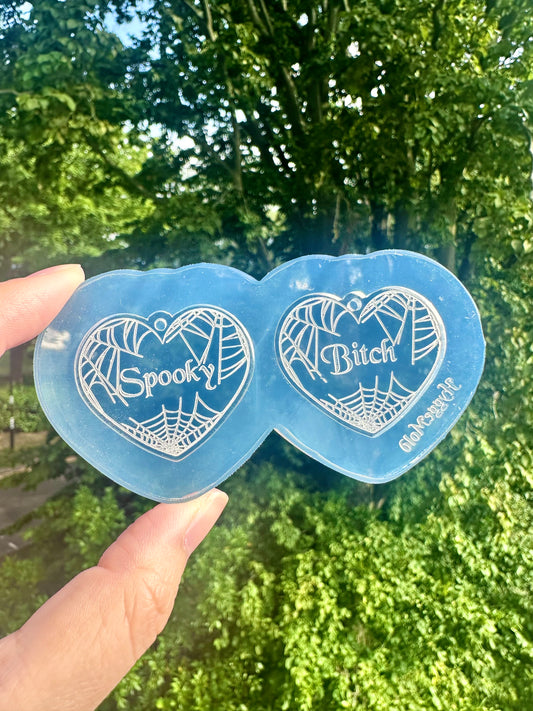 Large Spooky Bitch Spider Web Heart Dangle Earring Mold for Hoops