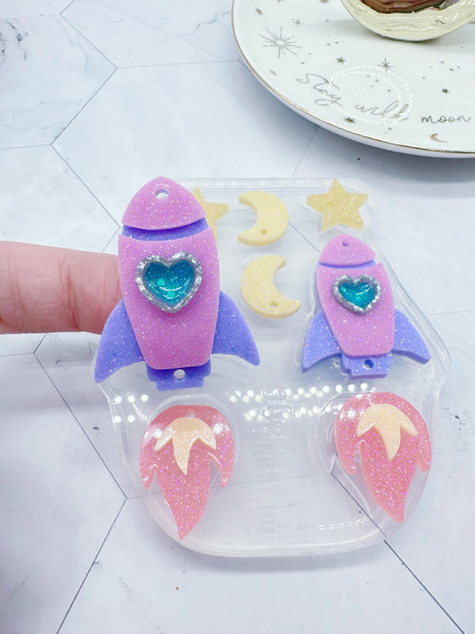 Layered Love Rocket Fire Dangle Earring Mold Spaceship Space travel Heart