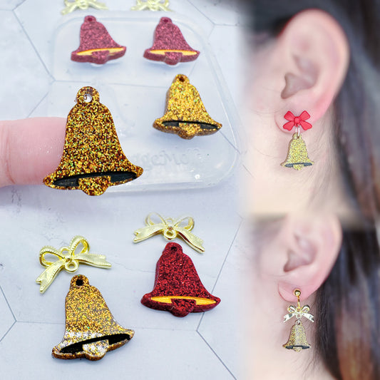 Christmas Robin Bird Resting on Wreath with Mini Bell Dangle Earring Mold