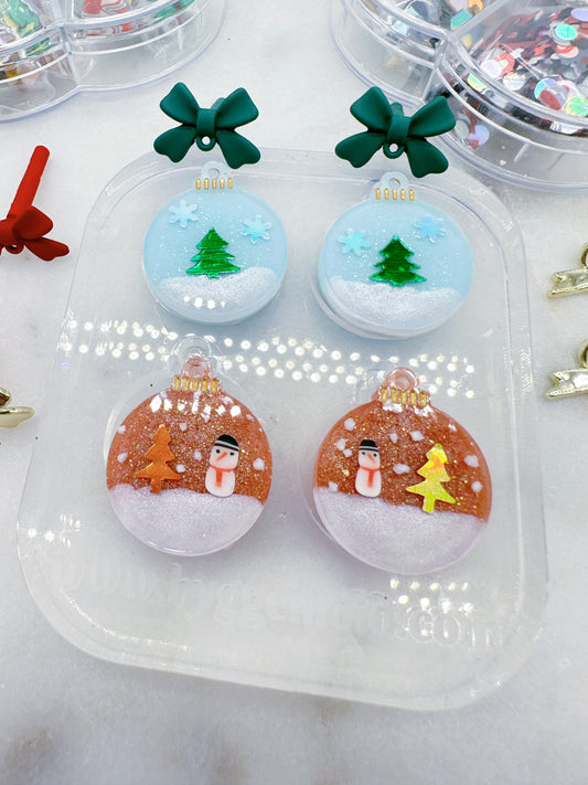 Small Christmas Tree Snowglobe Frame with Ribbon Bow Dangle Earring Mold