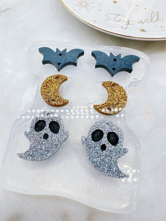 Triple Halloween Bat Ghost Moon Dangle Earring Mold