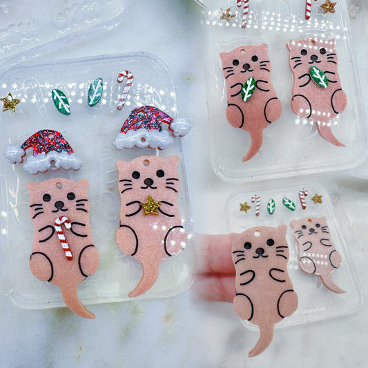 Autumn Sea Otter Dangle Earring with Christmas Candy Cane