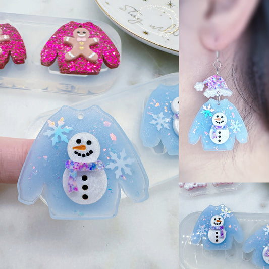 Layered Snowman Ugly Sweater Dangle Earring Mold