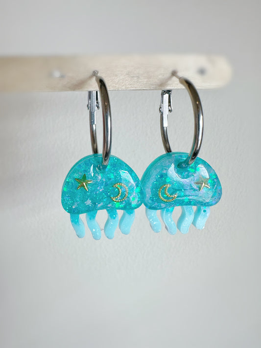 Small Predomed Moon Jellies Jellyfish Ocean Hoop Charm Dangle Earring Mold