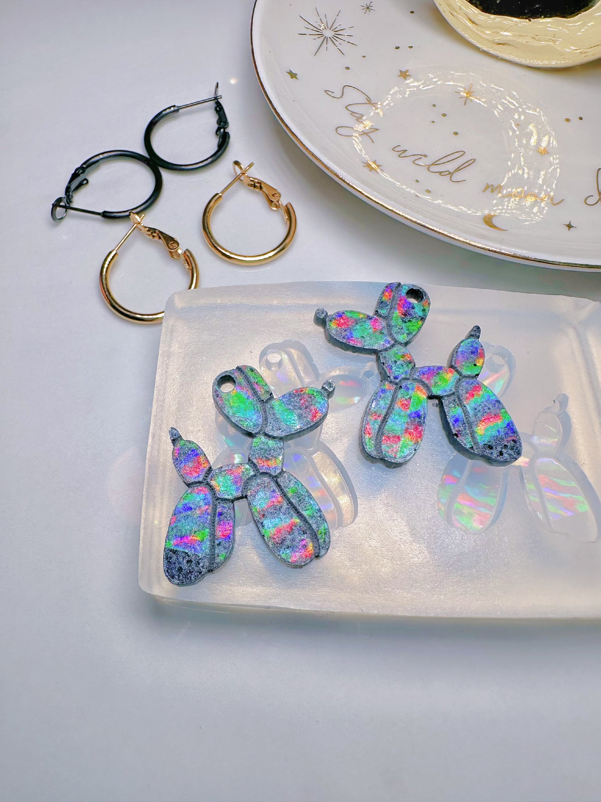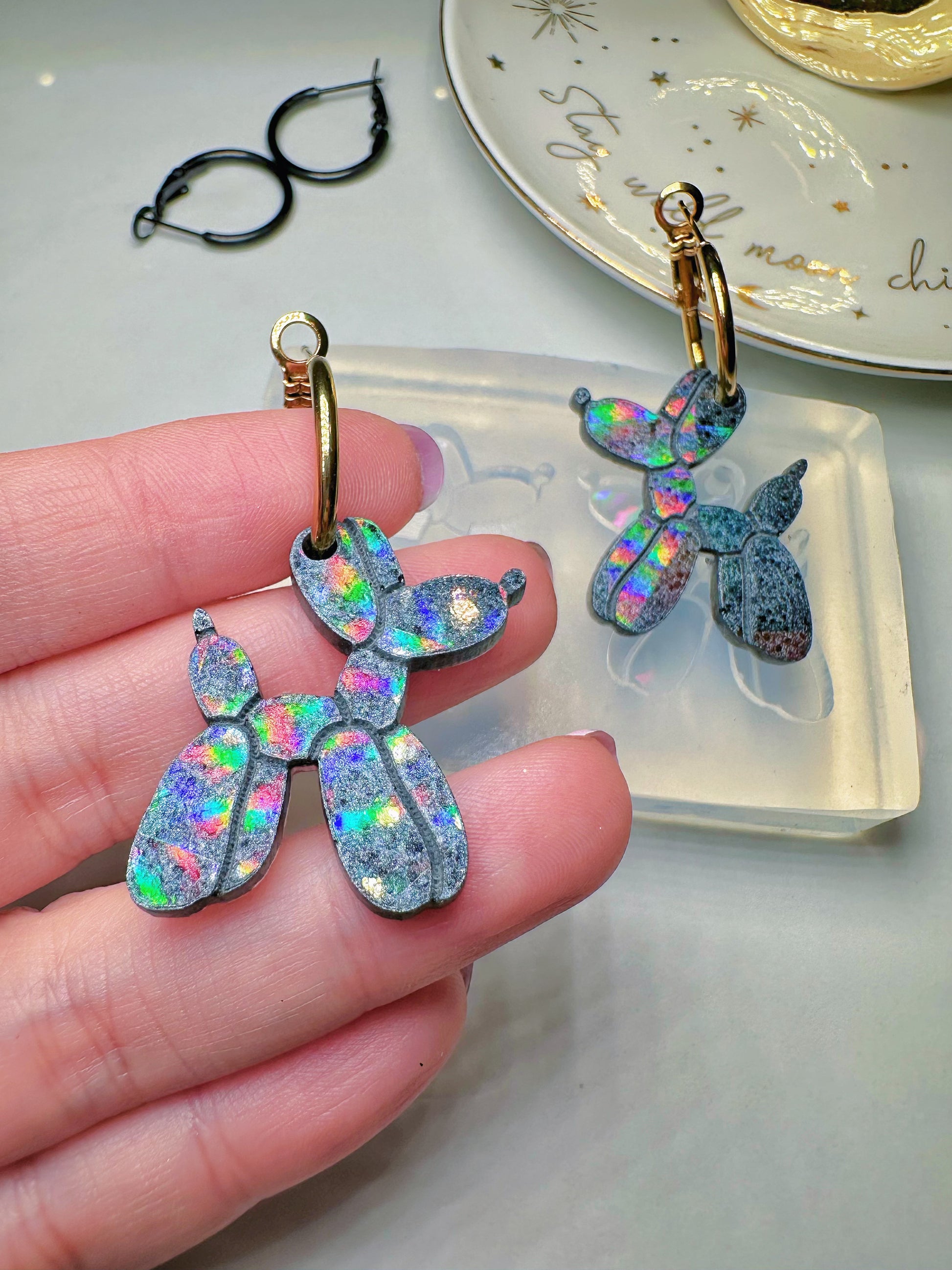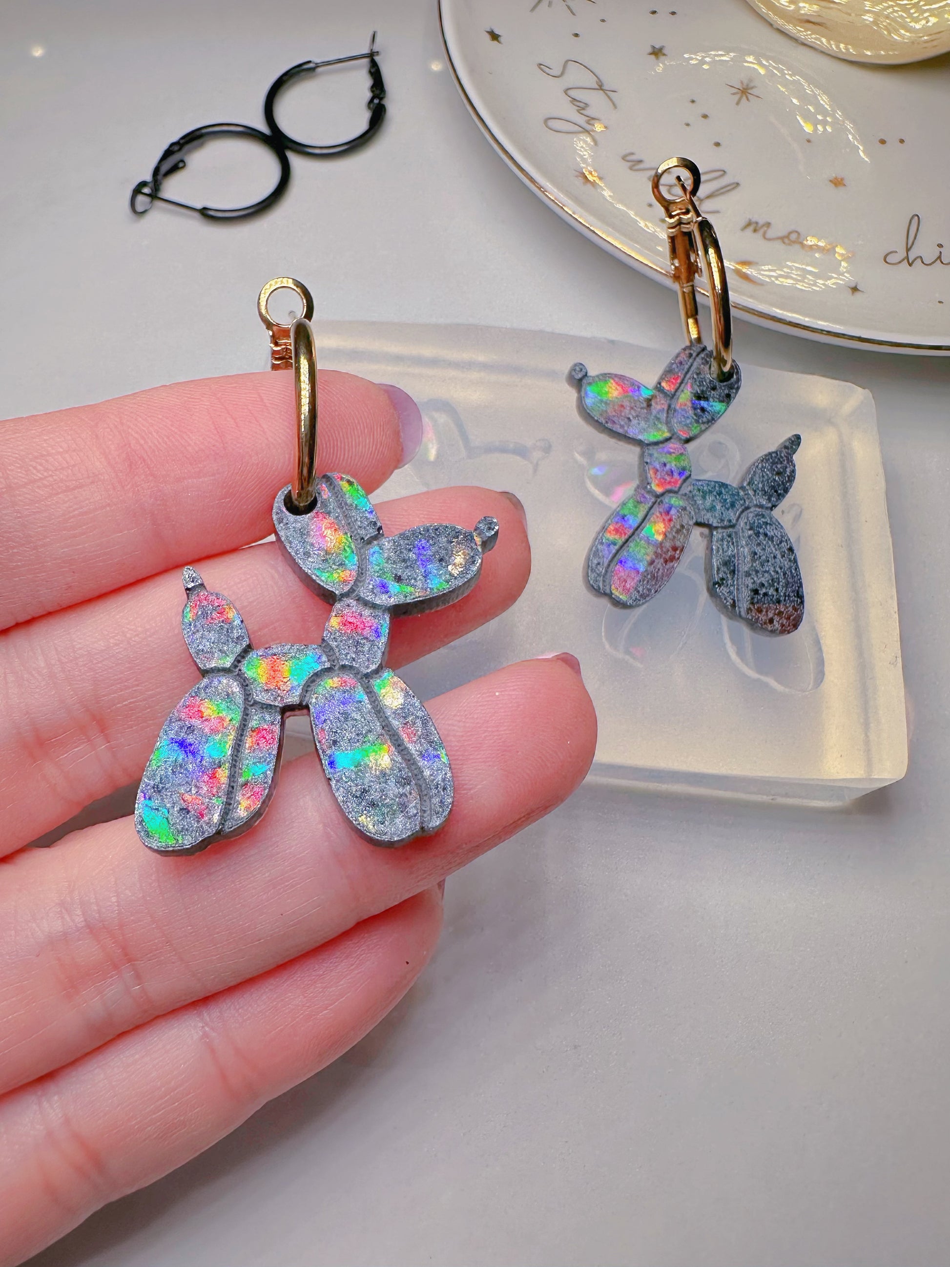 3.2cm Holographic Balloon Dog Dangle Earring Mold for Hoop Charms