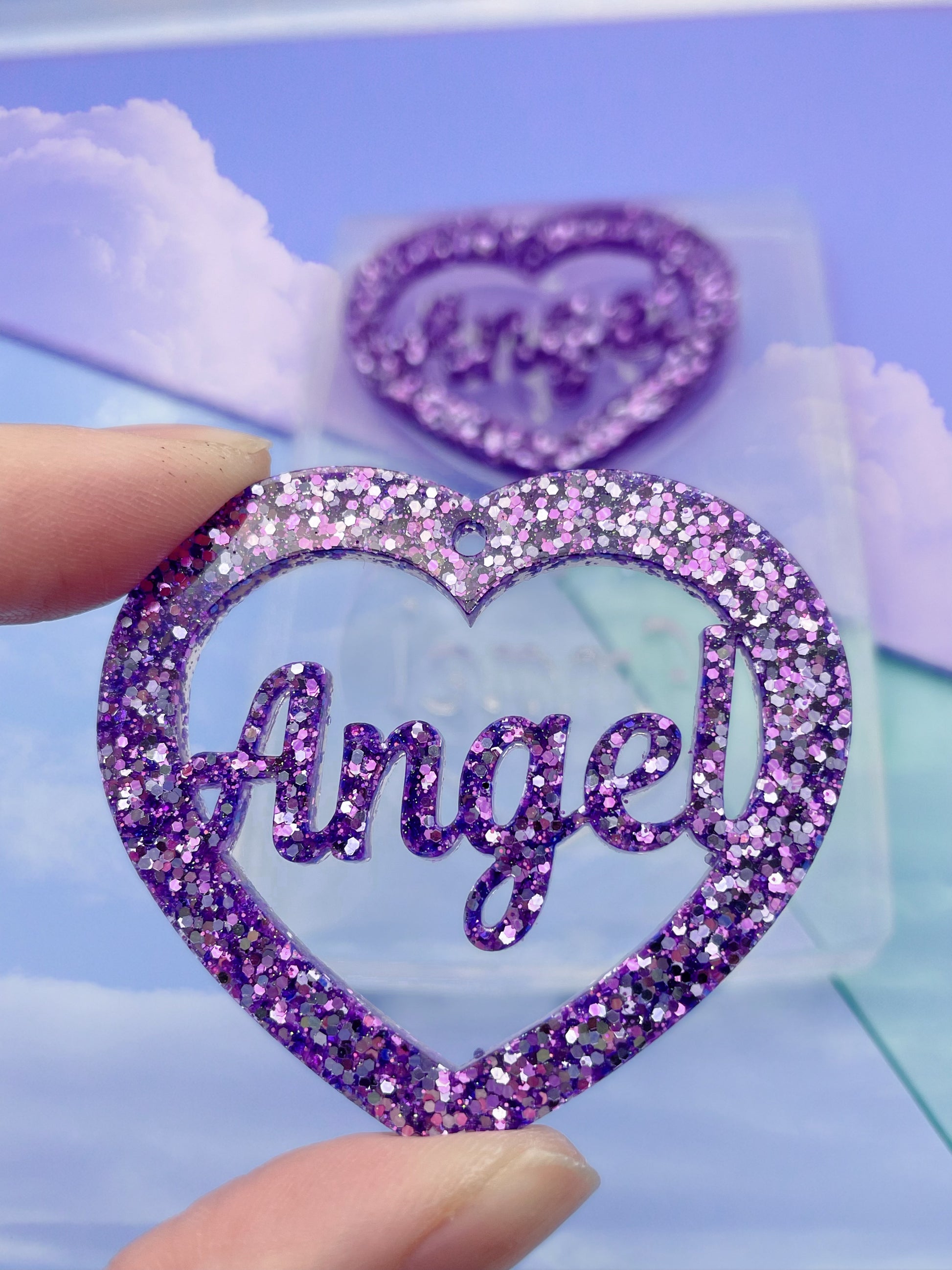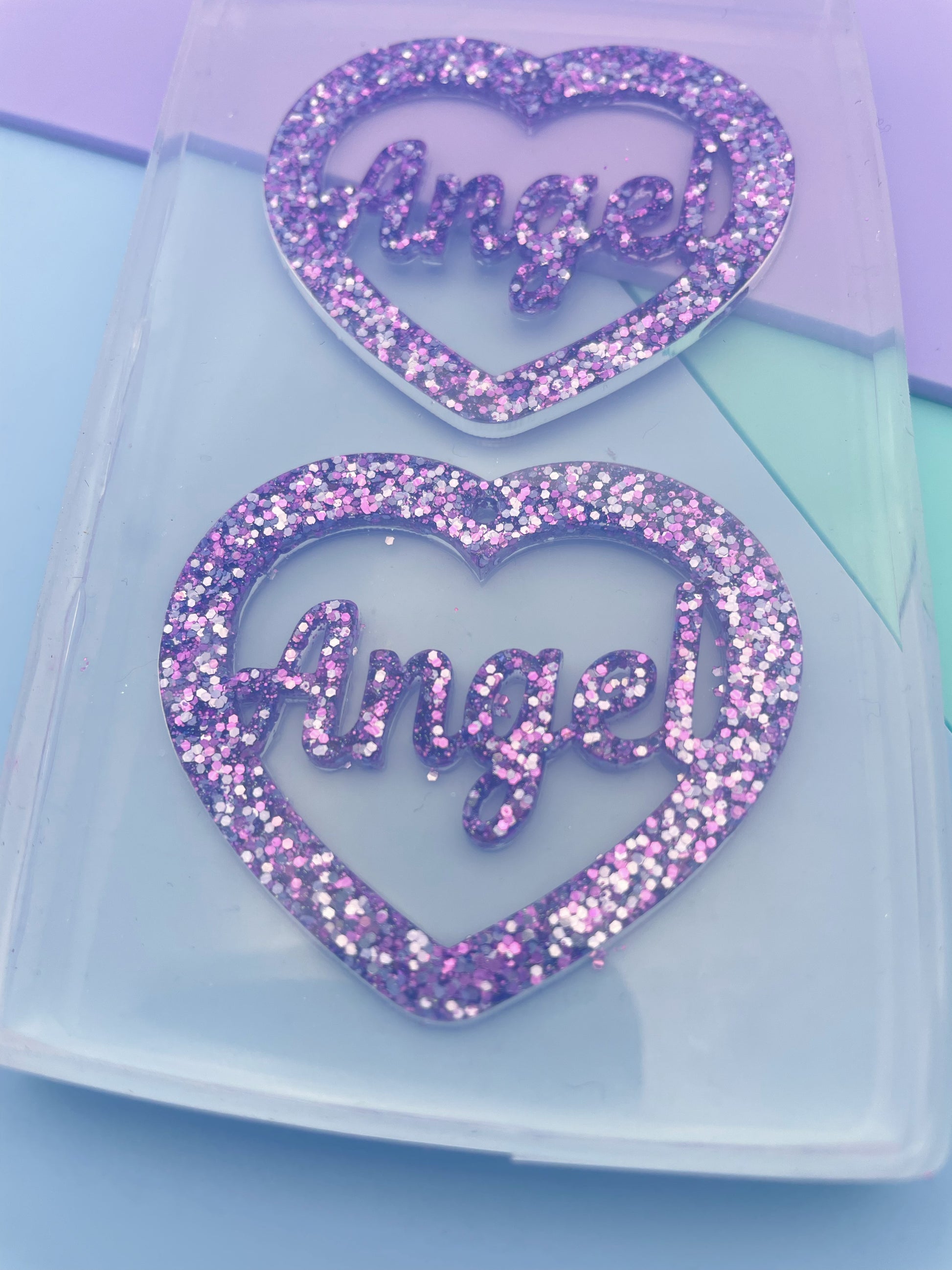 5cm Angel Slogan Word Heart Dangle Earring Mold