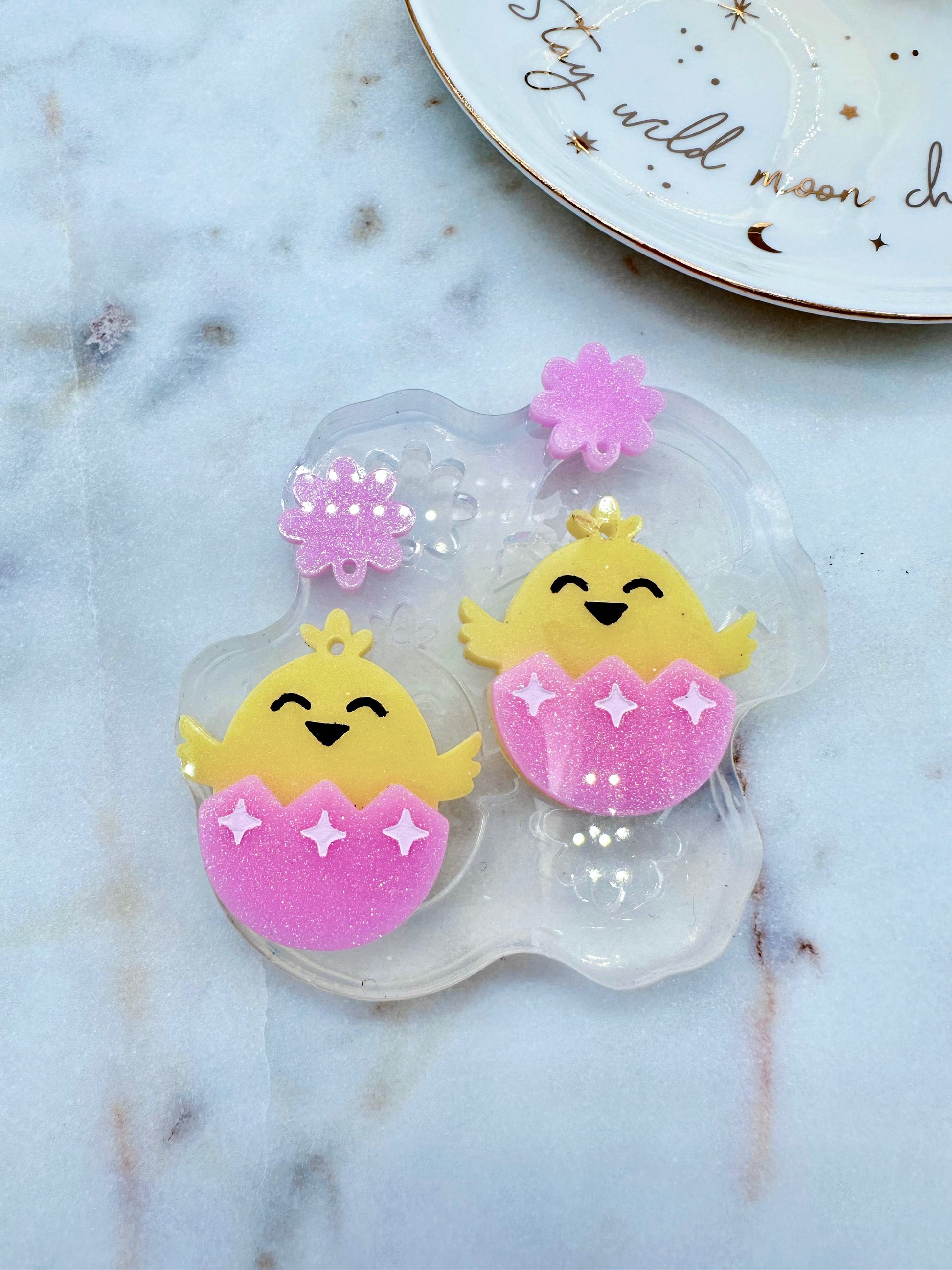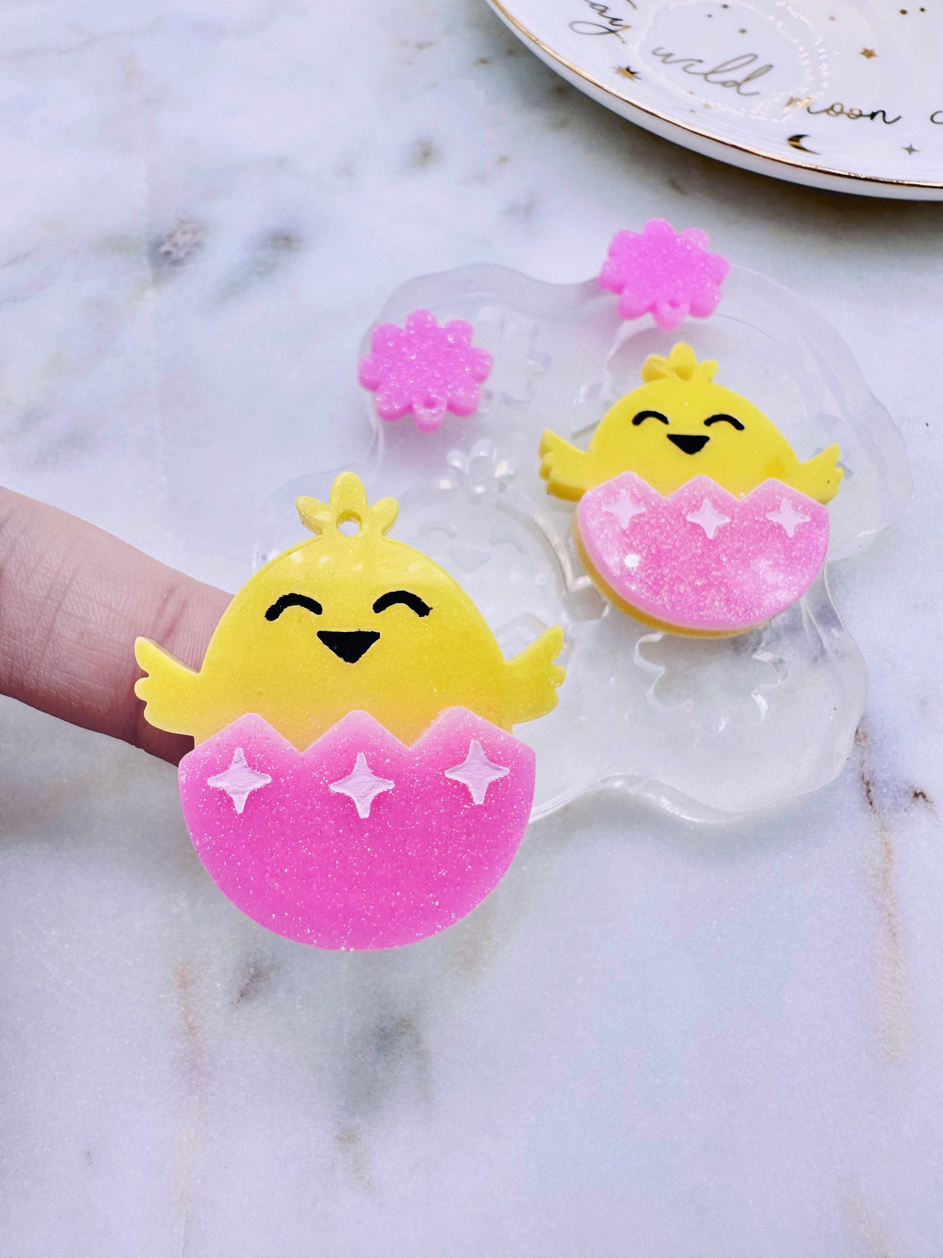 Make your Easter style stand out with this quirky A Chick is Born earring mold! Each piece, 3.5 cm, brings smiles with little chicks popping out from their shells, ready to party! Create your own unique earrings that are sure to be the highlight of any look. A Chick is Born!