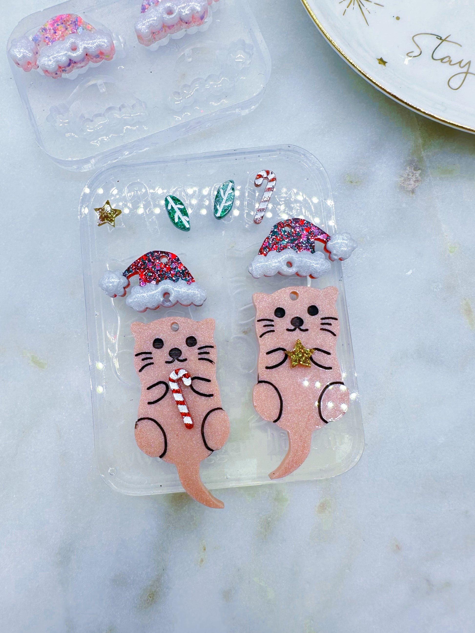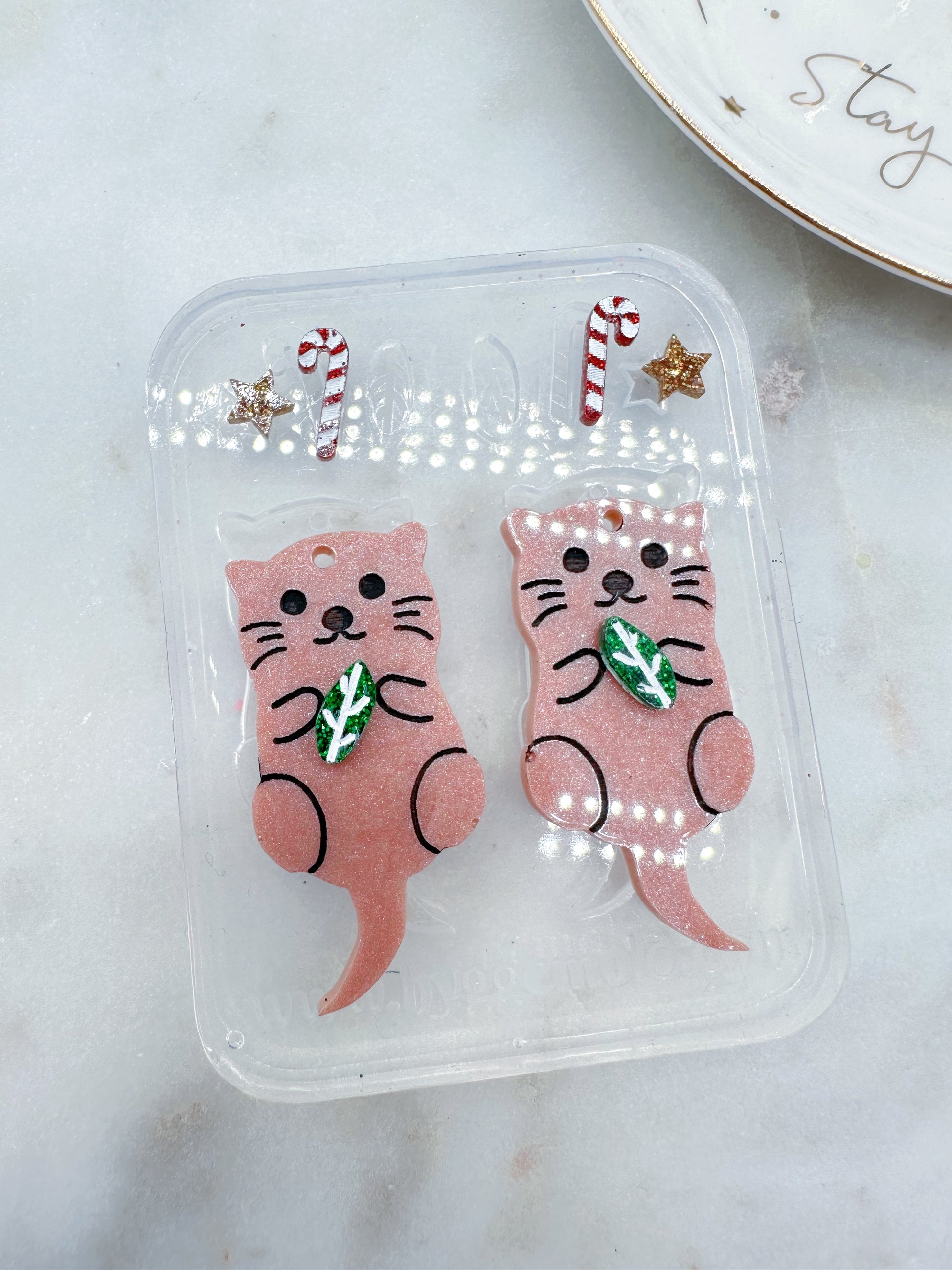 Autumn Sea Otter Dangle Earring with Christmas Candy Cane