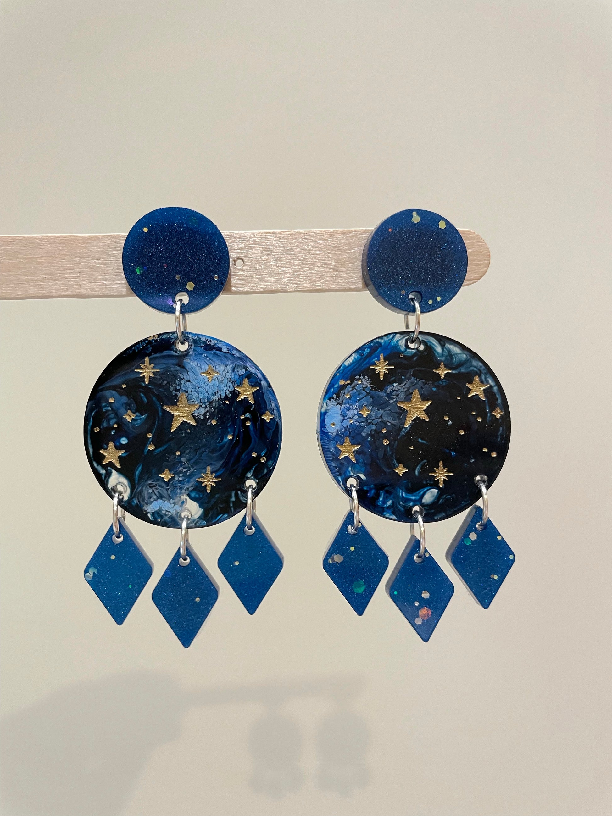 Starry Sky Round Disc with Rhombus tassel Dangle Drop Earring Mold