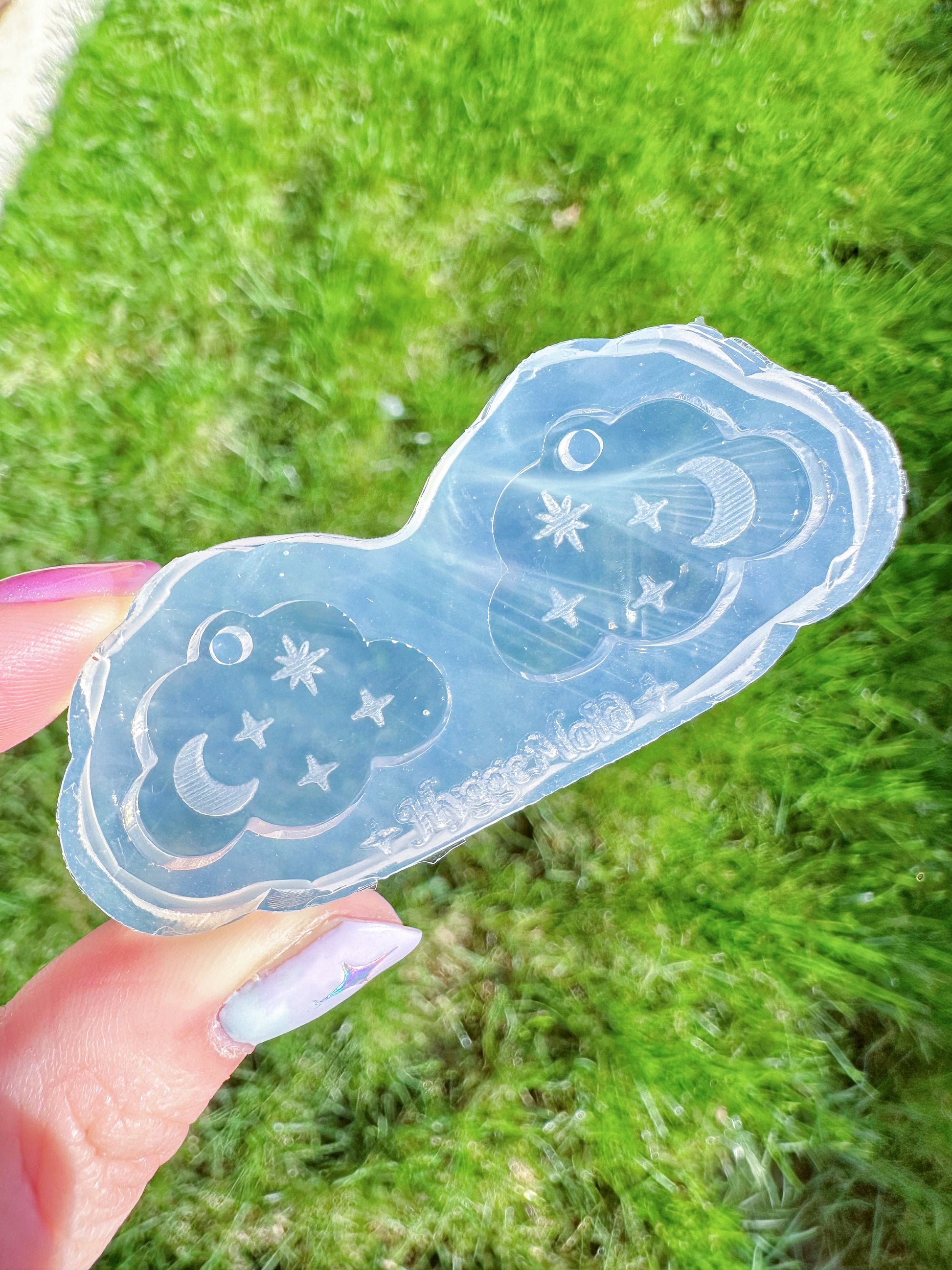 Create dreamy and celestial hoop charms and dangle earrings with our Dainty Engraved Celestial Cloud Dangly Charm Hoop Earring Mold. Measuring at 2.6 cm, this mold boasts a glossy finish and deep etchings for easy paint filling.