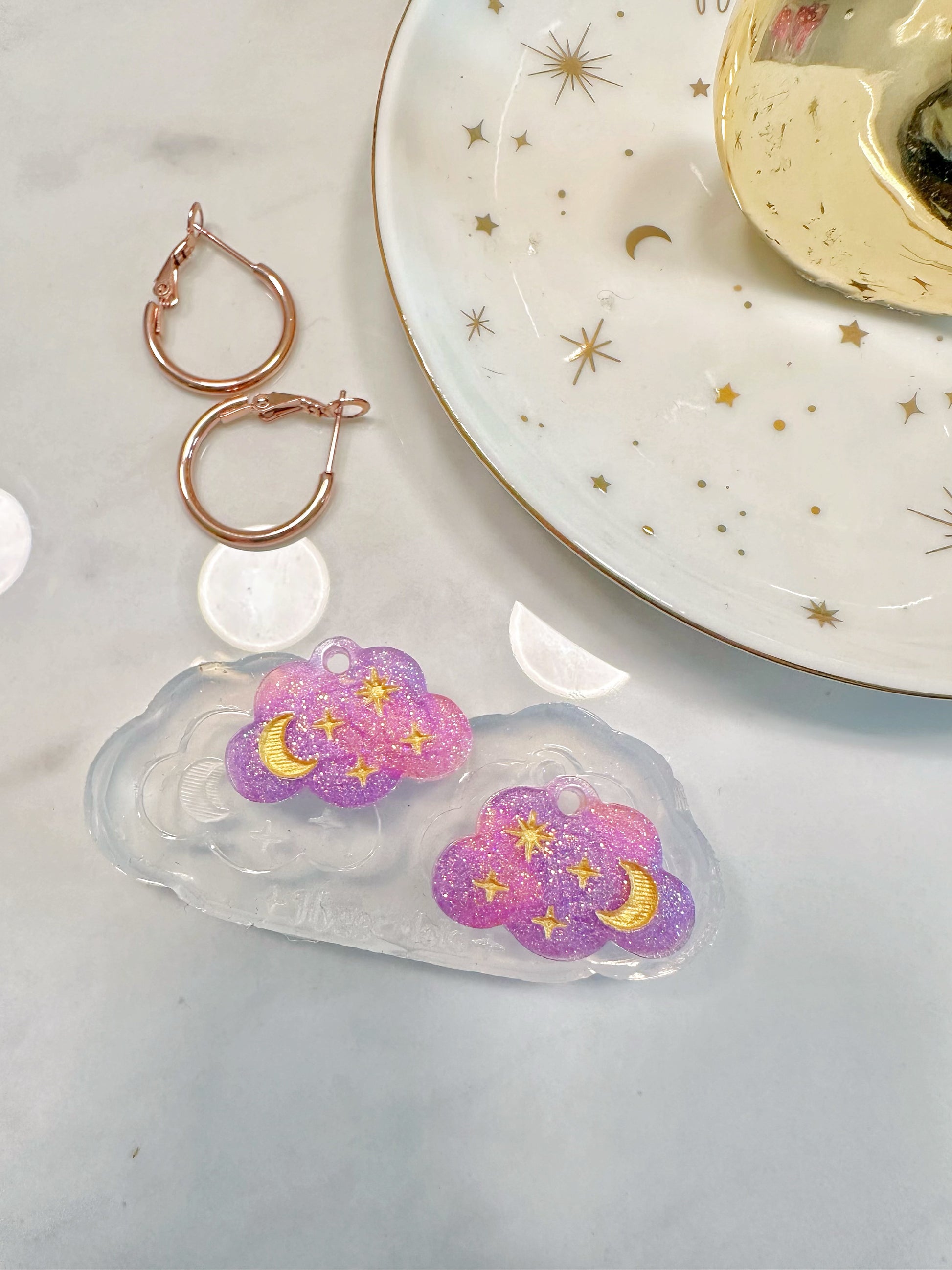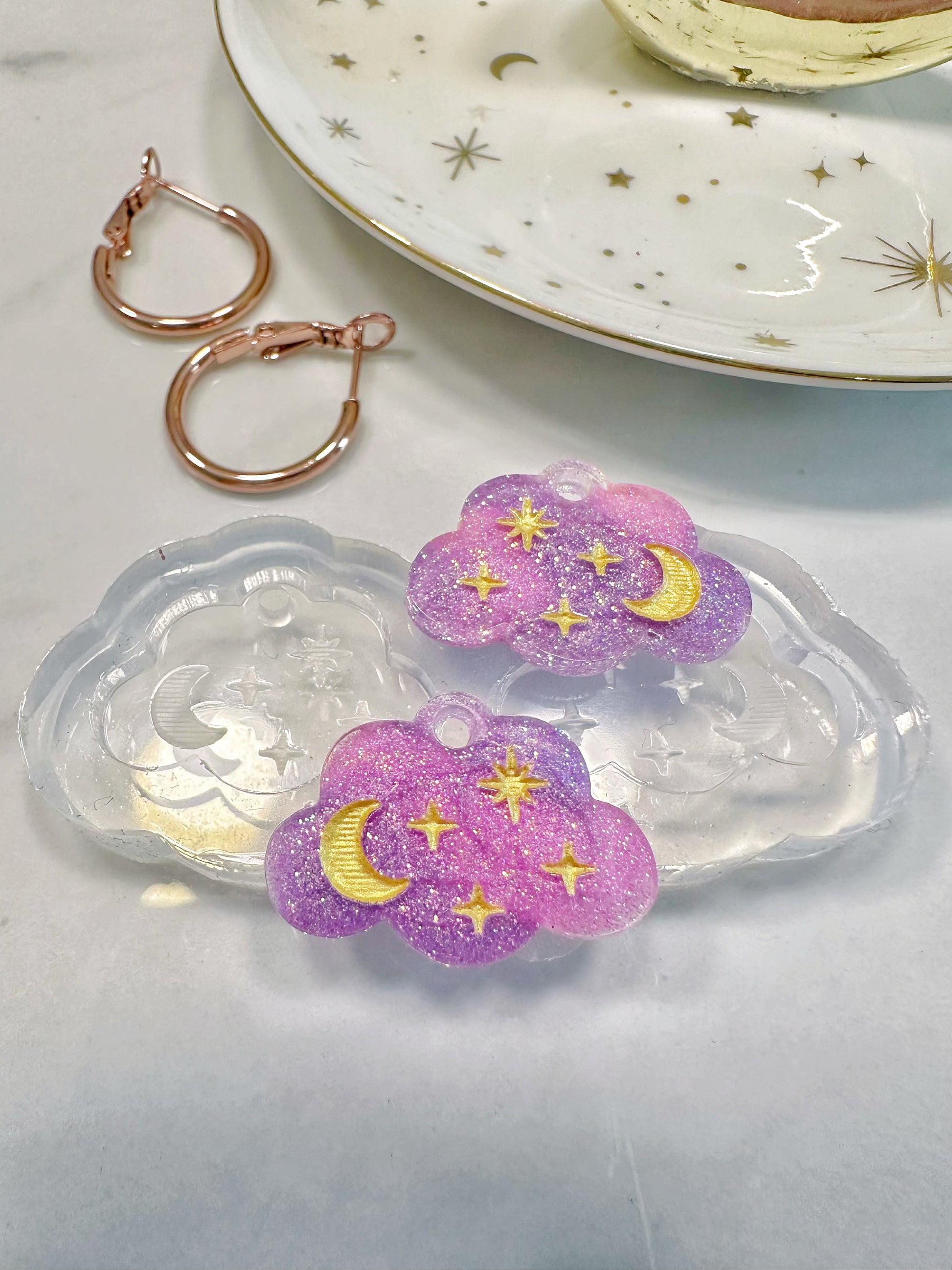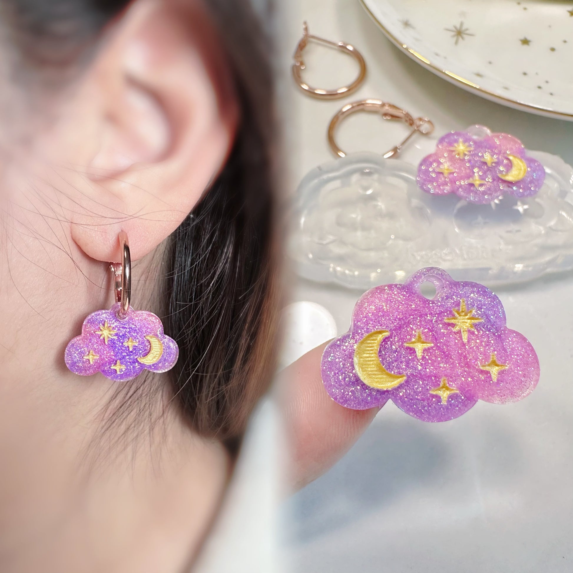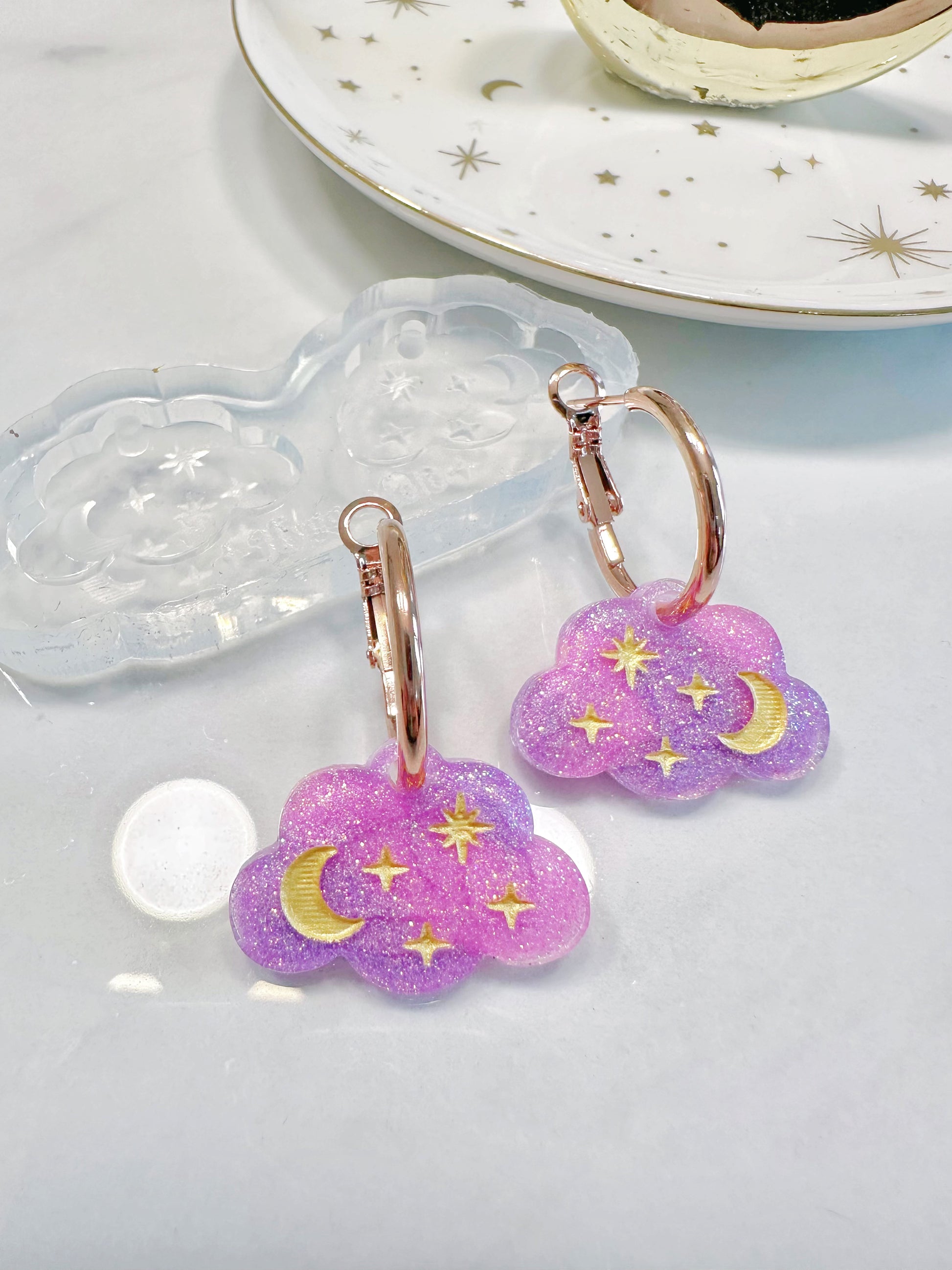 Dreamy Engraved Celestial Cloud Dangly Charm Hoop Earring Mold