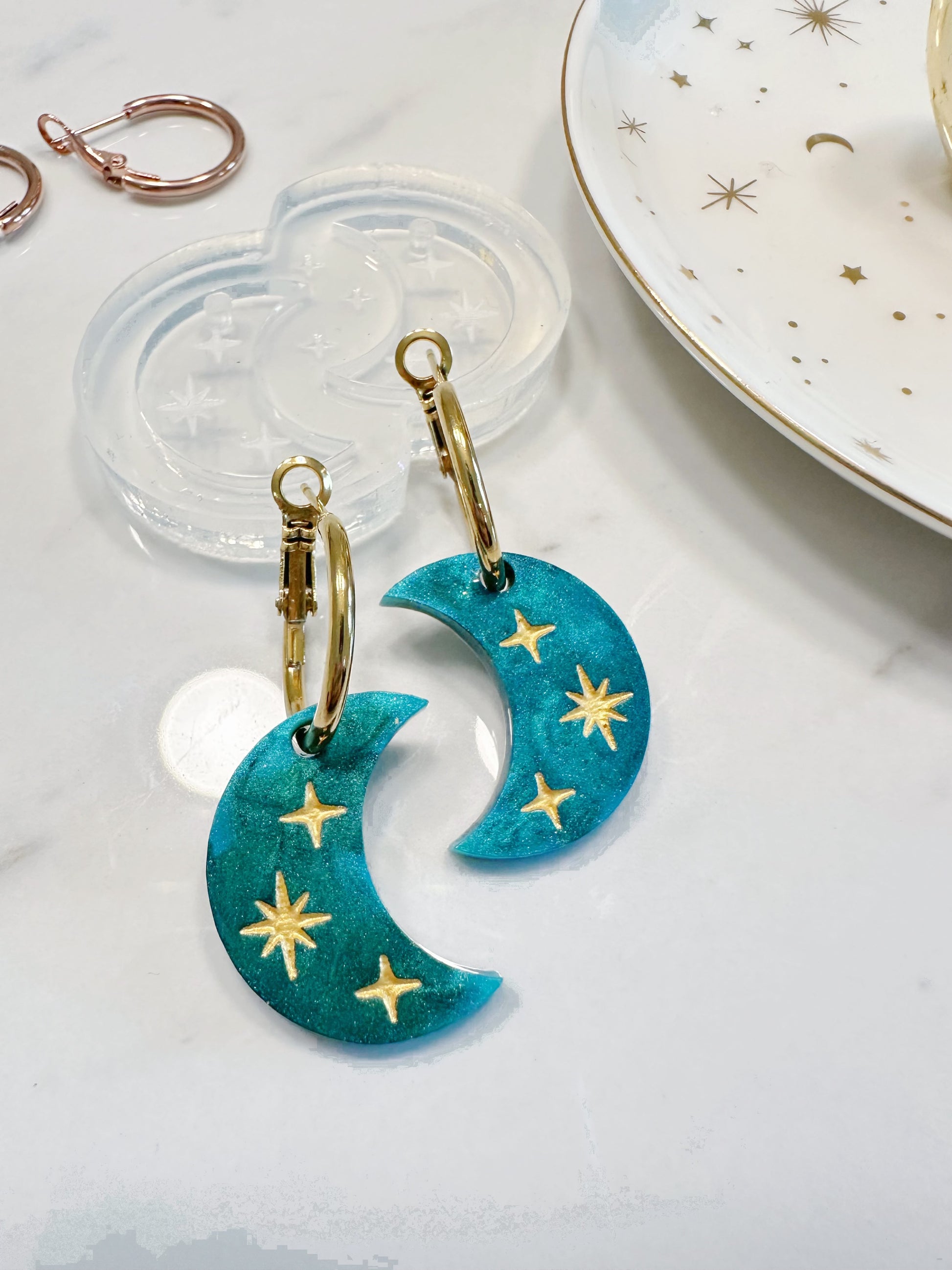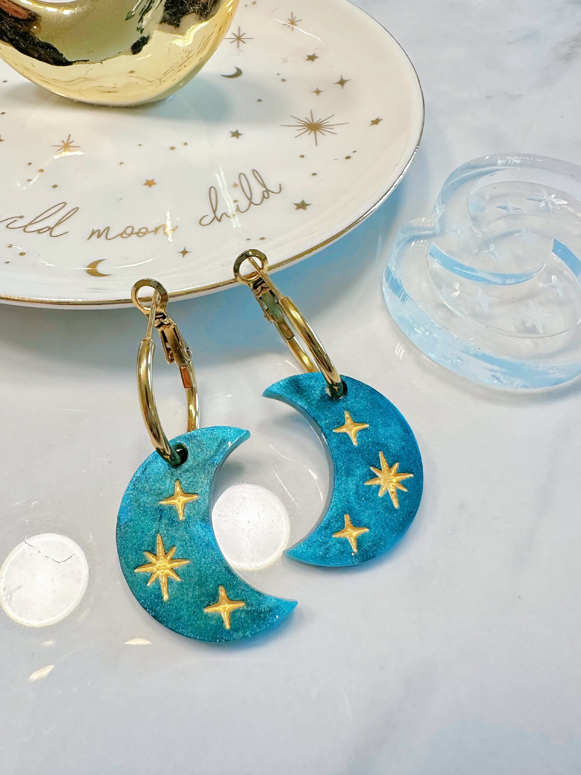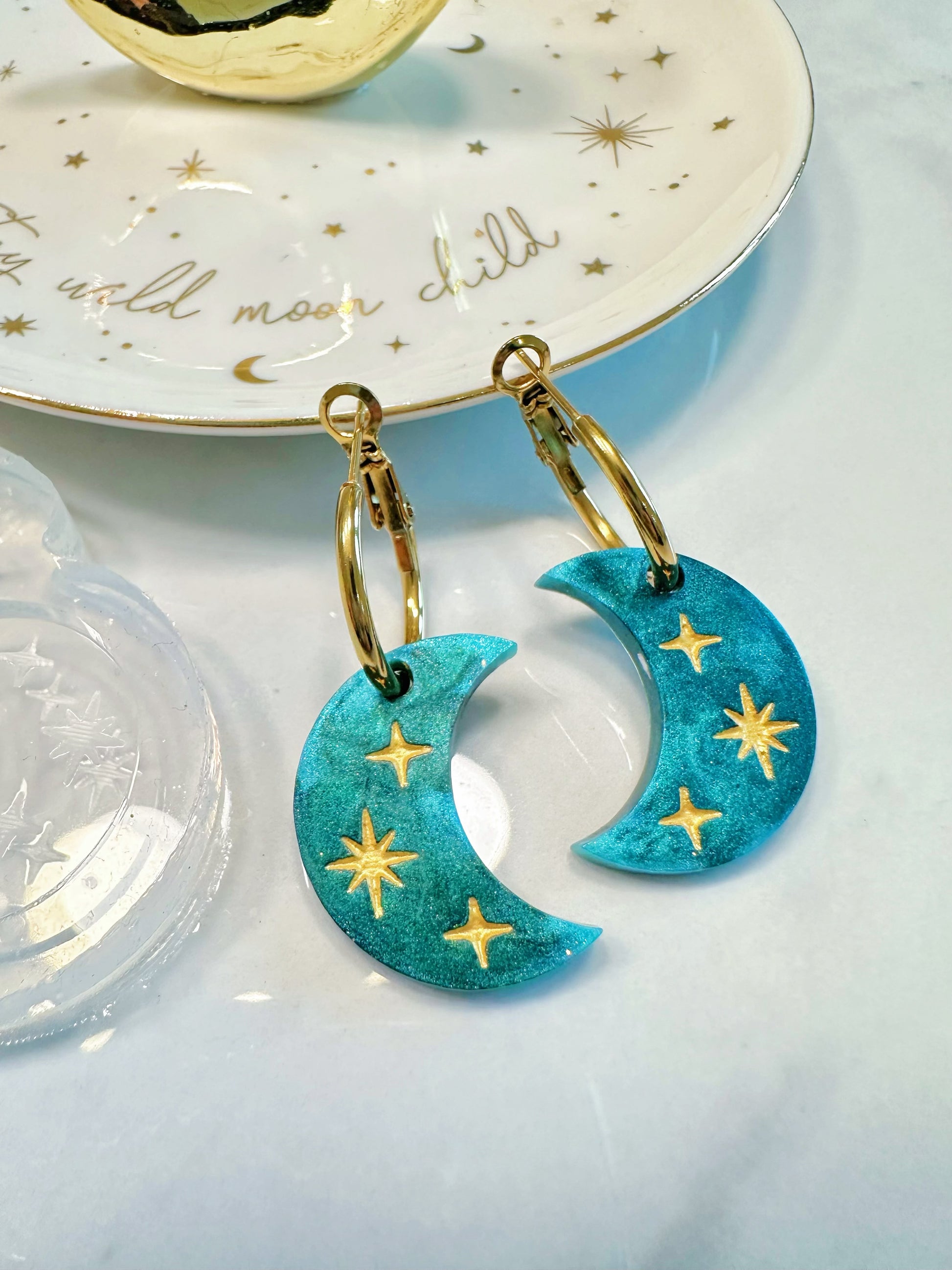Dreamy Engraved Celestial Moon Dangly Charm Hoop Earring Mold