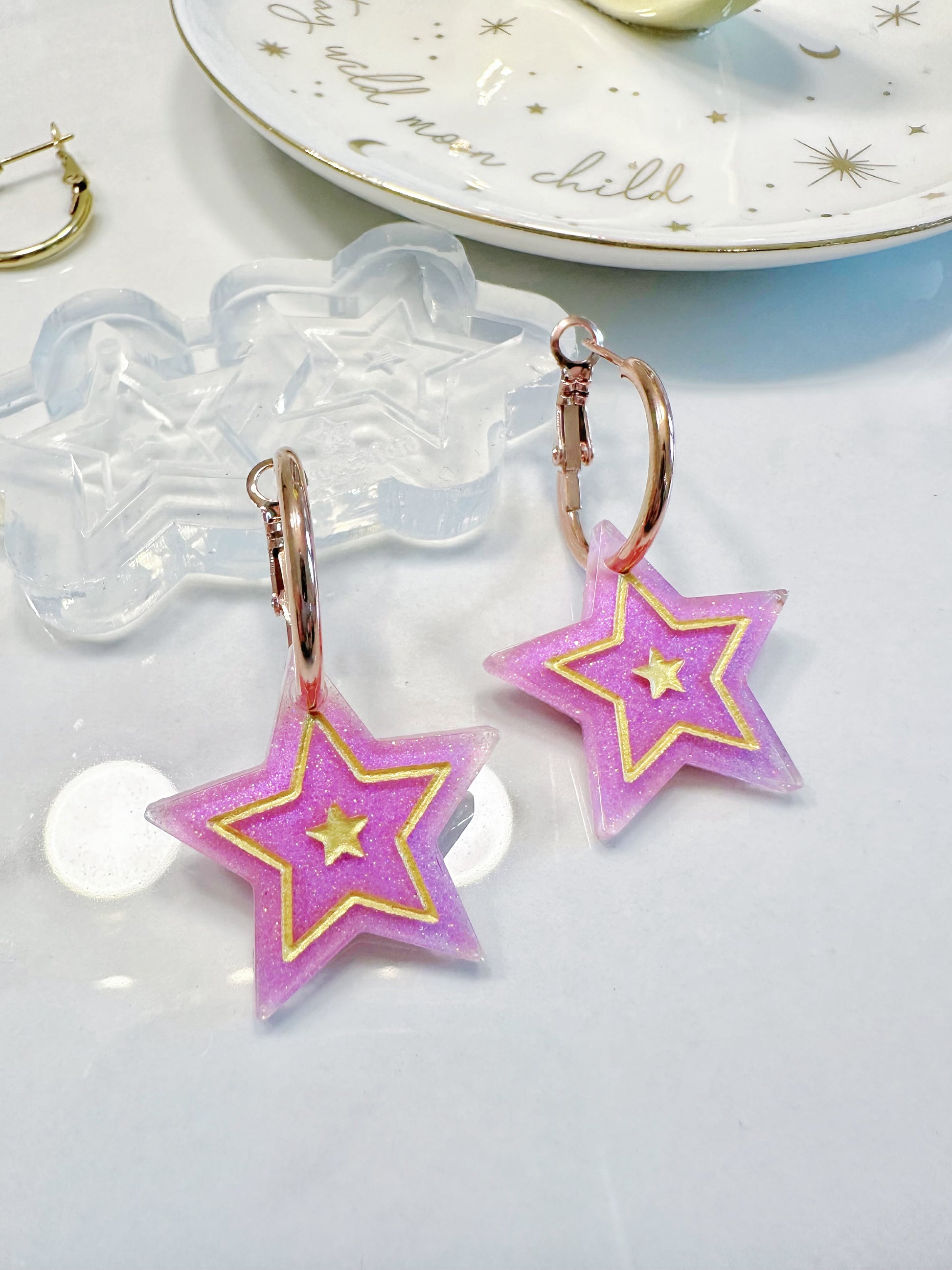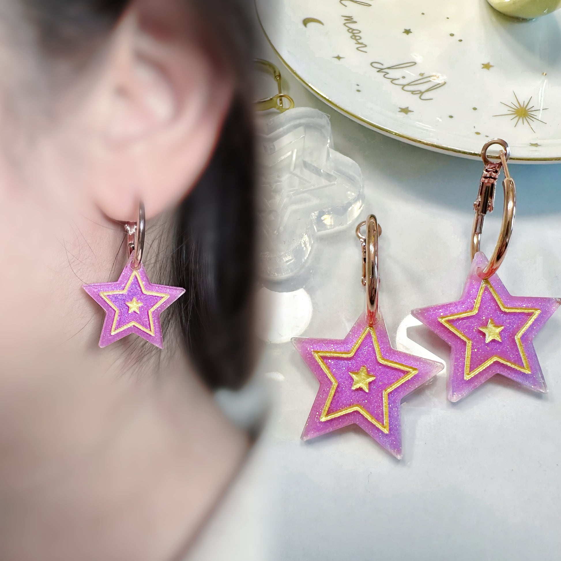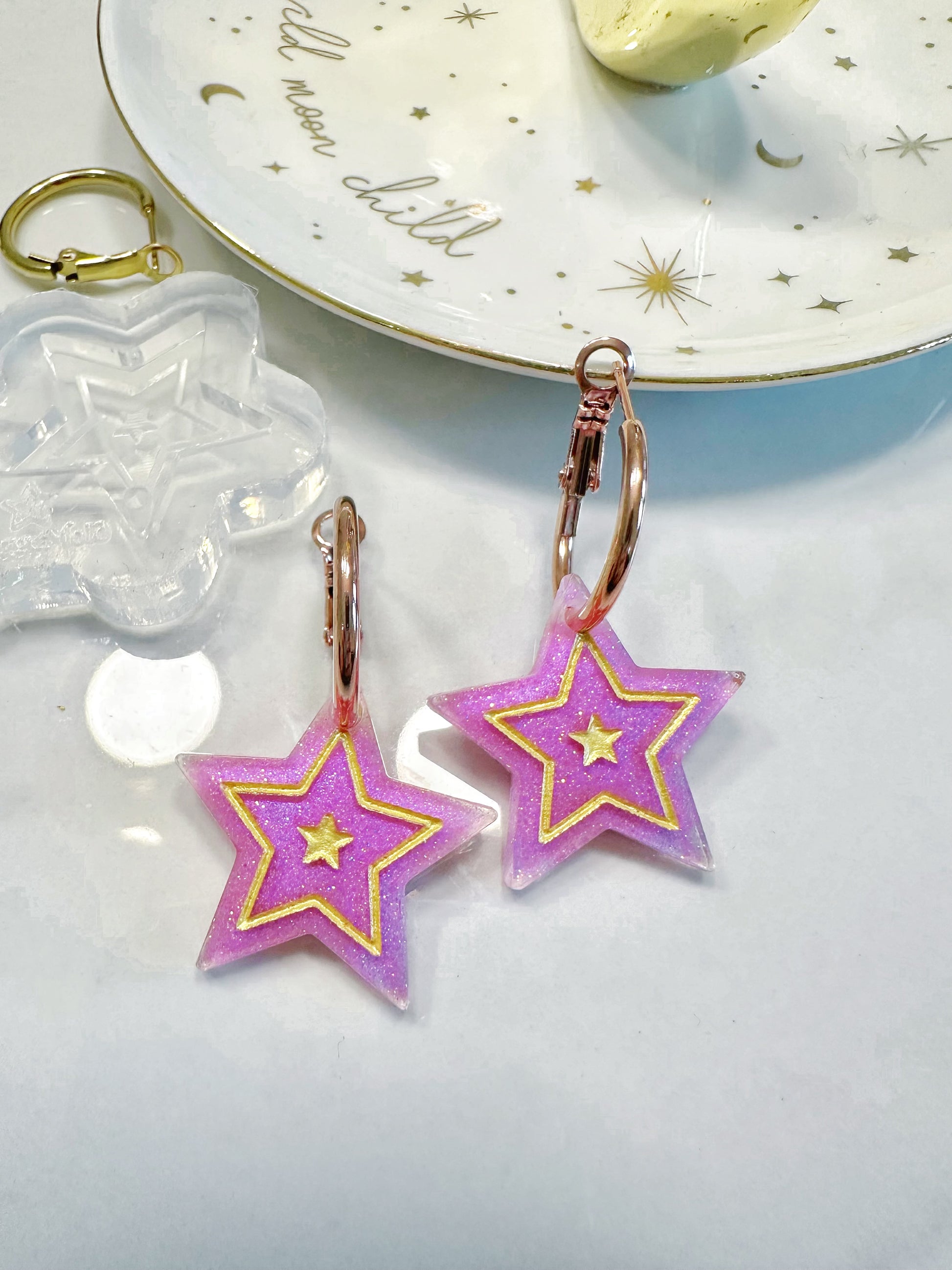 Dreamy Engraved Star Dangly Charm Hoop Earring Mold