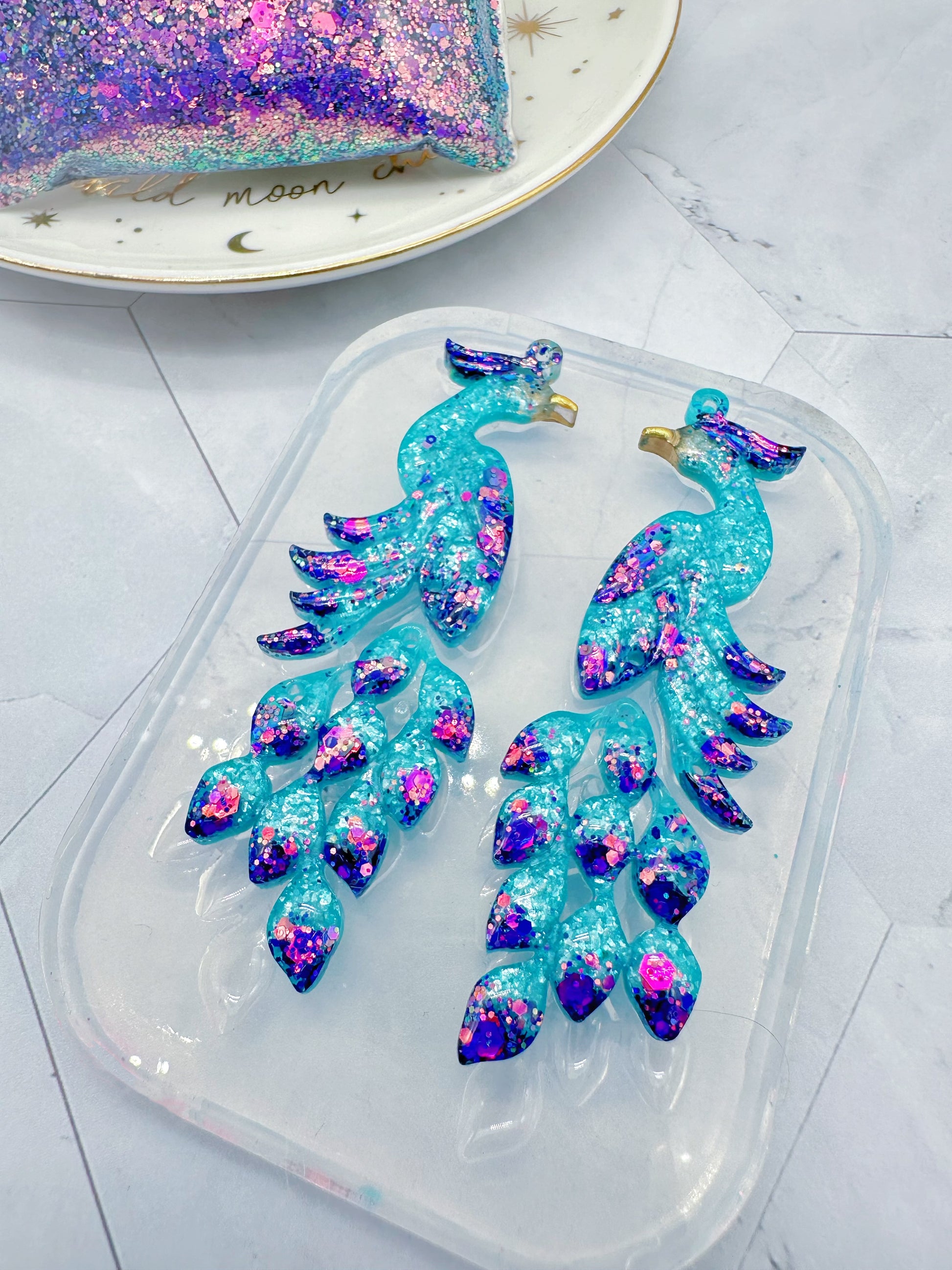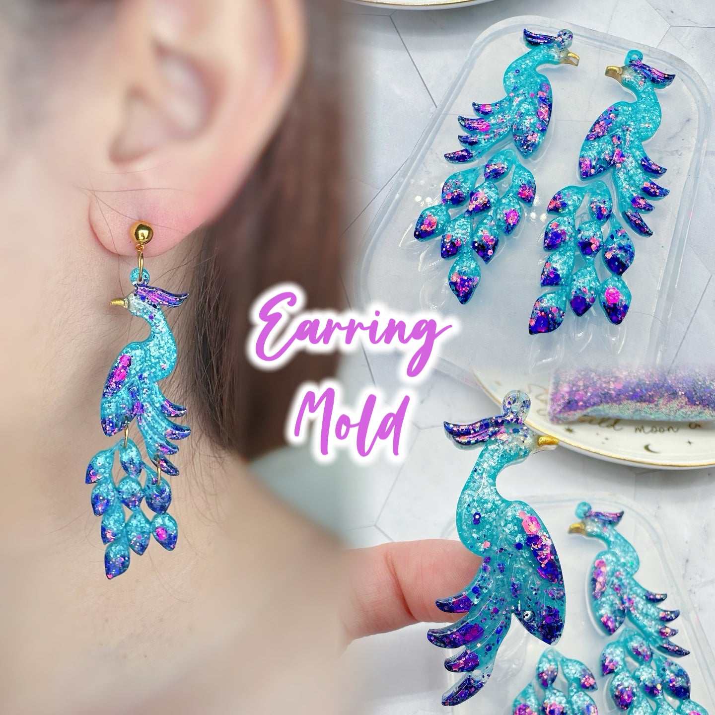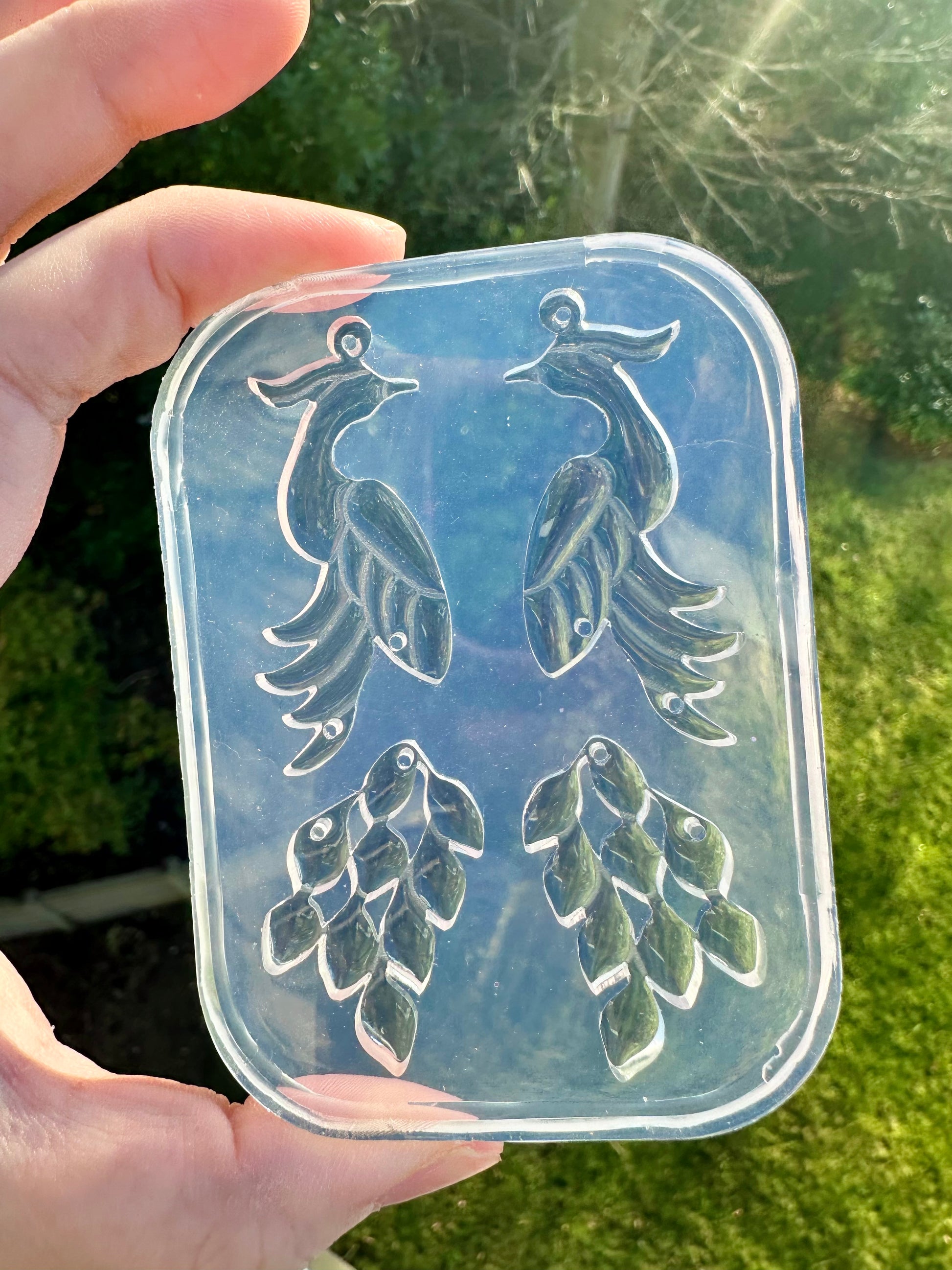Elegant Peacock Dangle Earring Mold Clear Silicone Mold for Resin