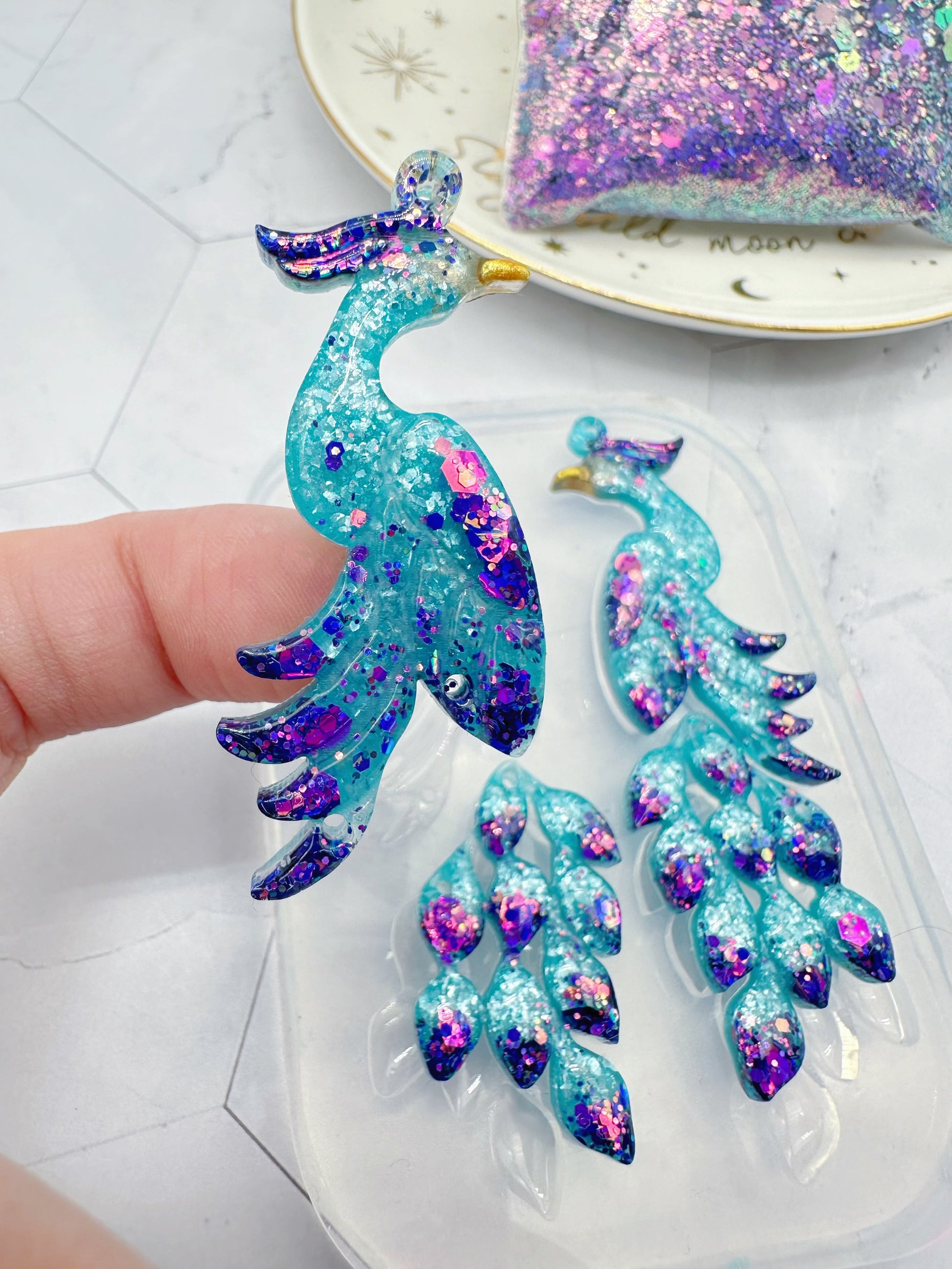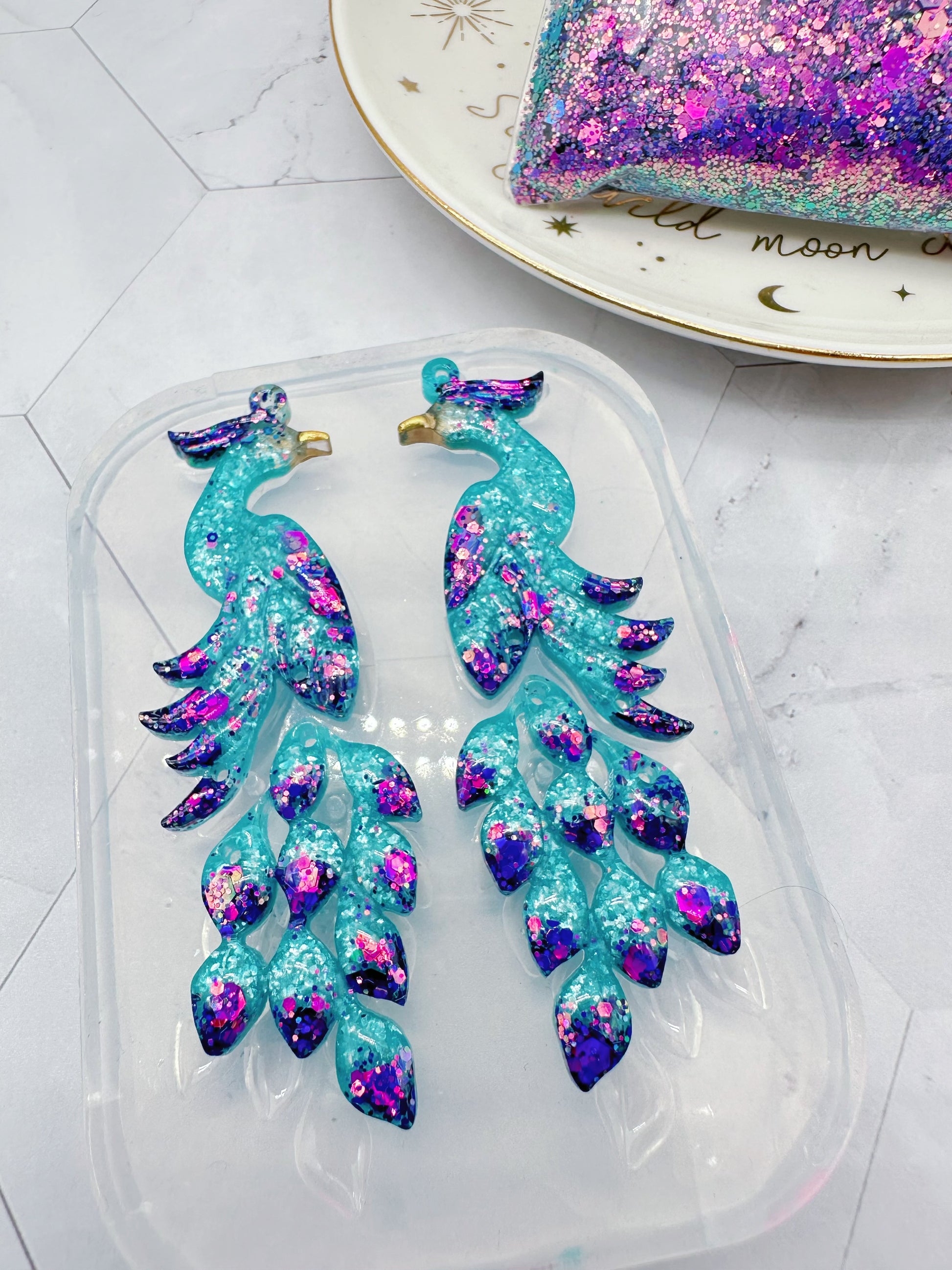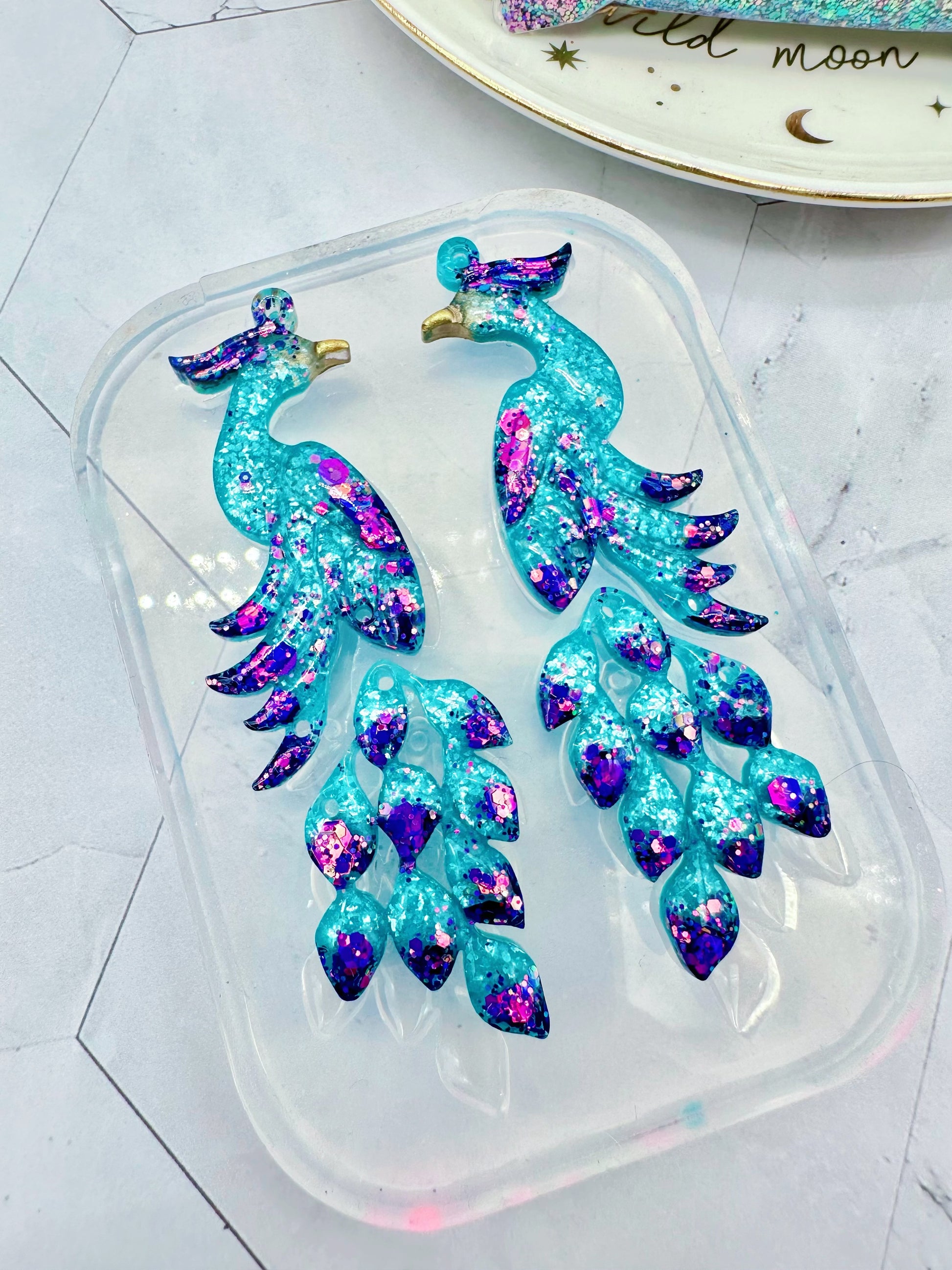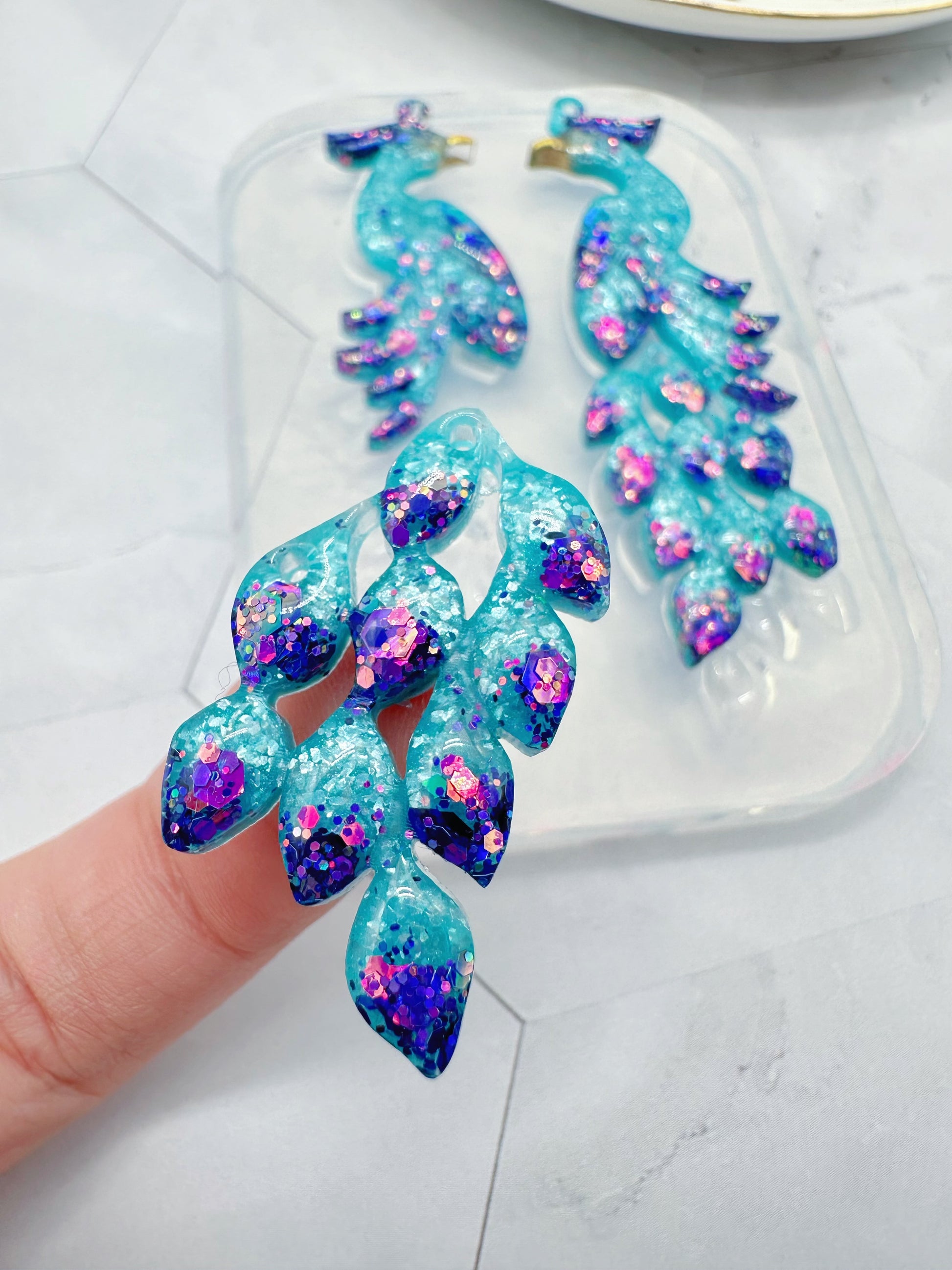Elegant Peacock Dangle Earring Mold Clear Silicone Mold for Resin