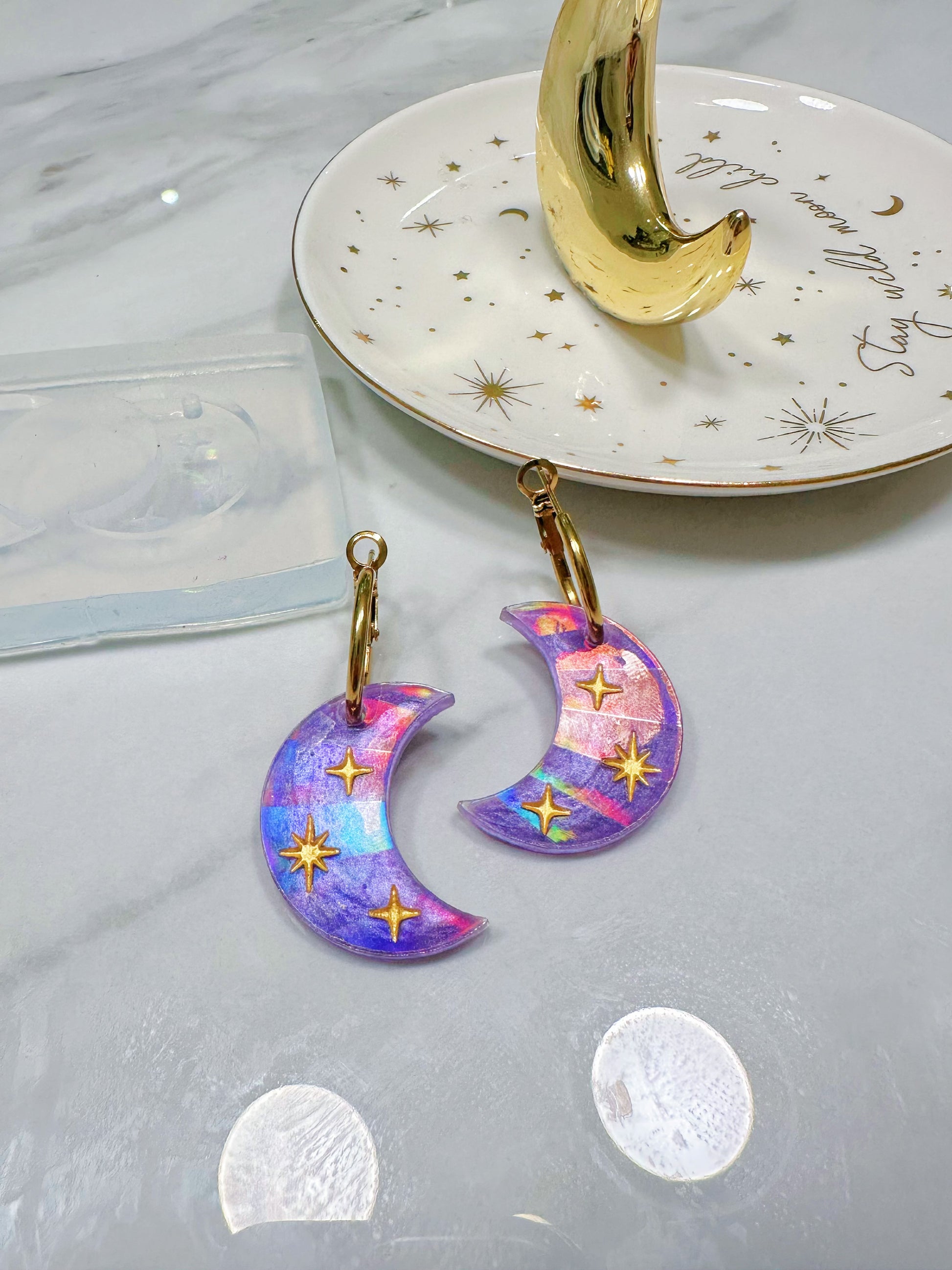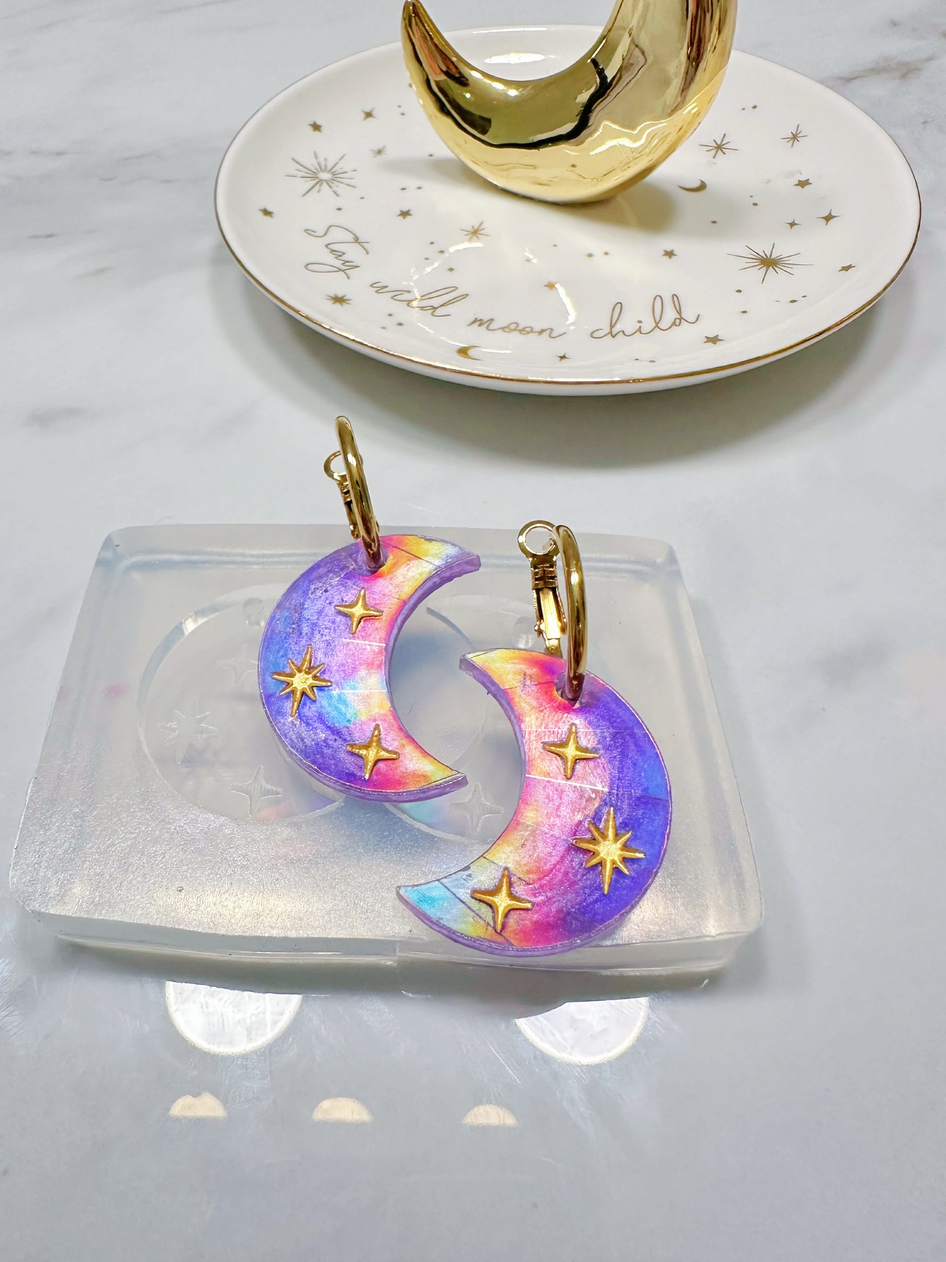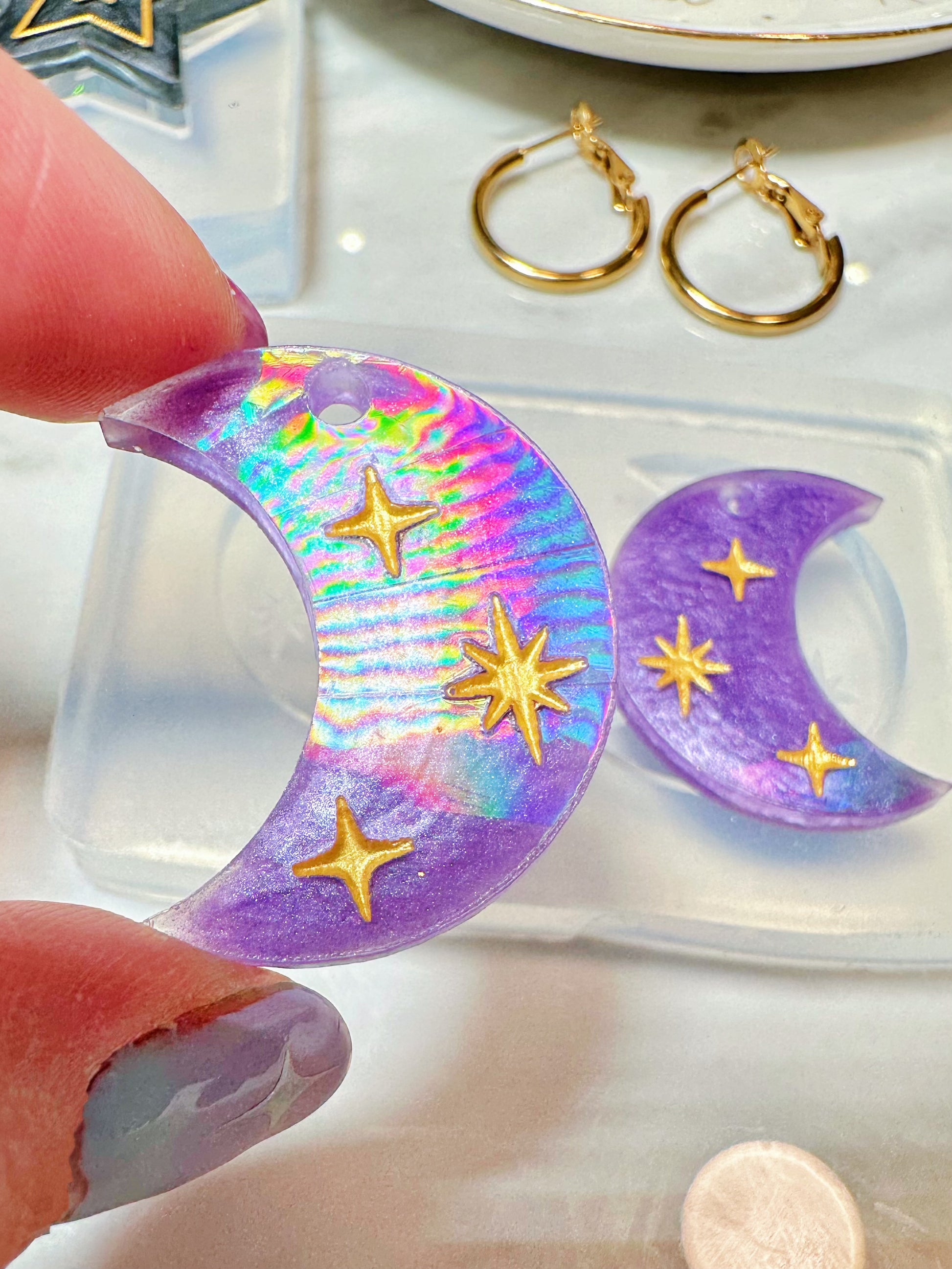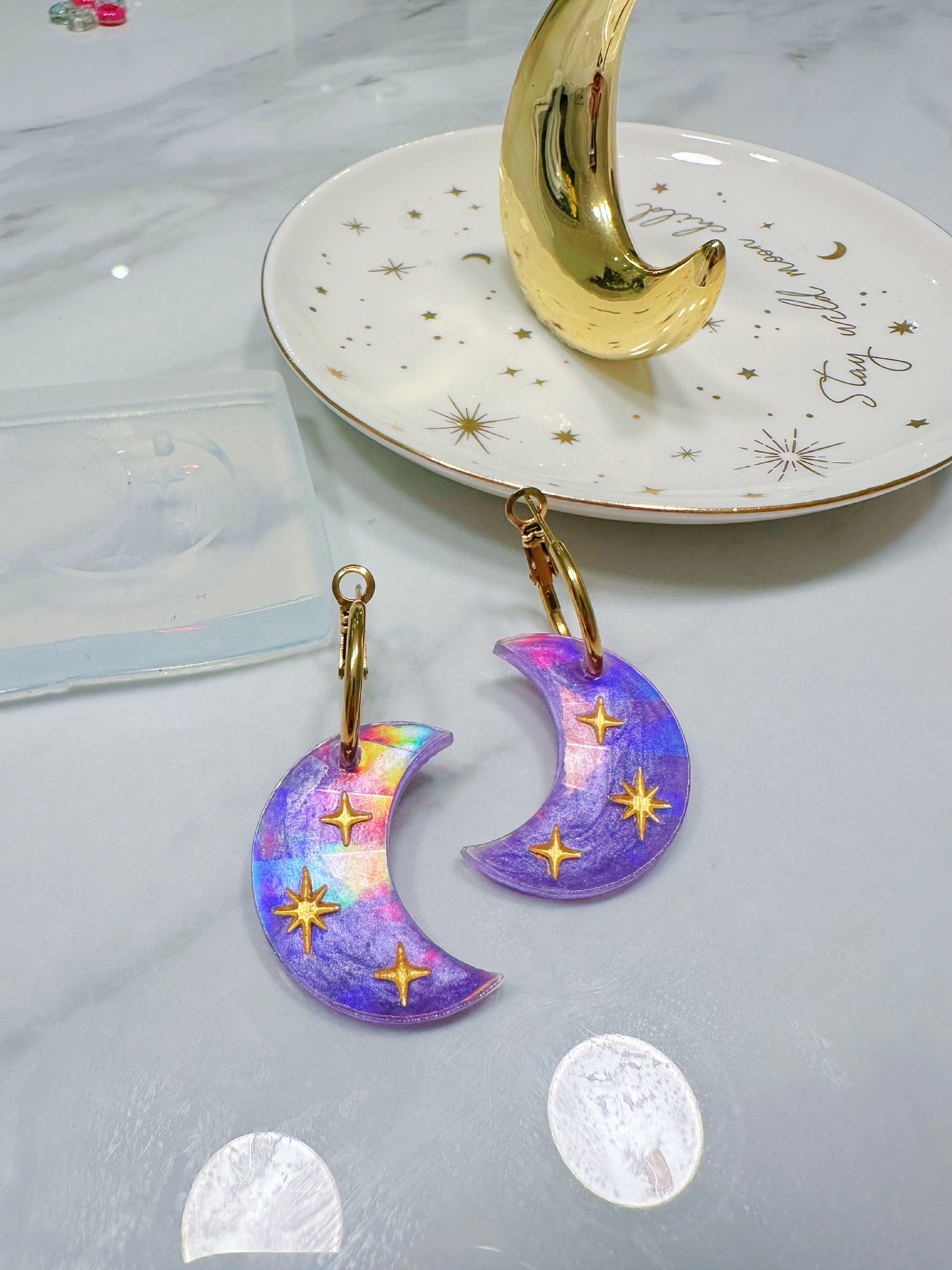Holographic Engraved Celestial Moon Dangle Earring Mold for Hoop Charms